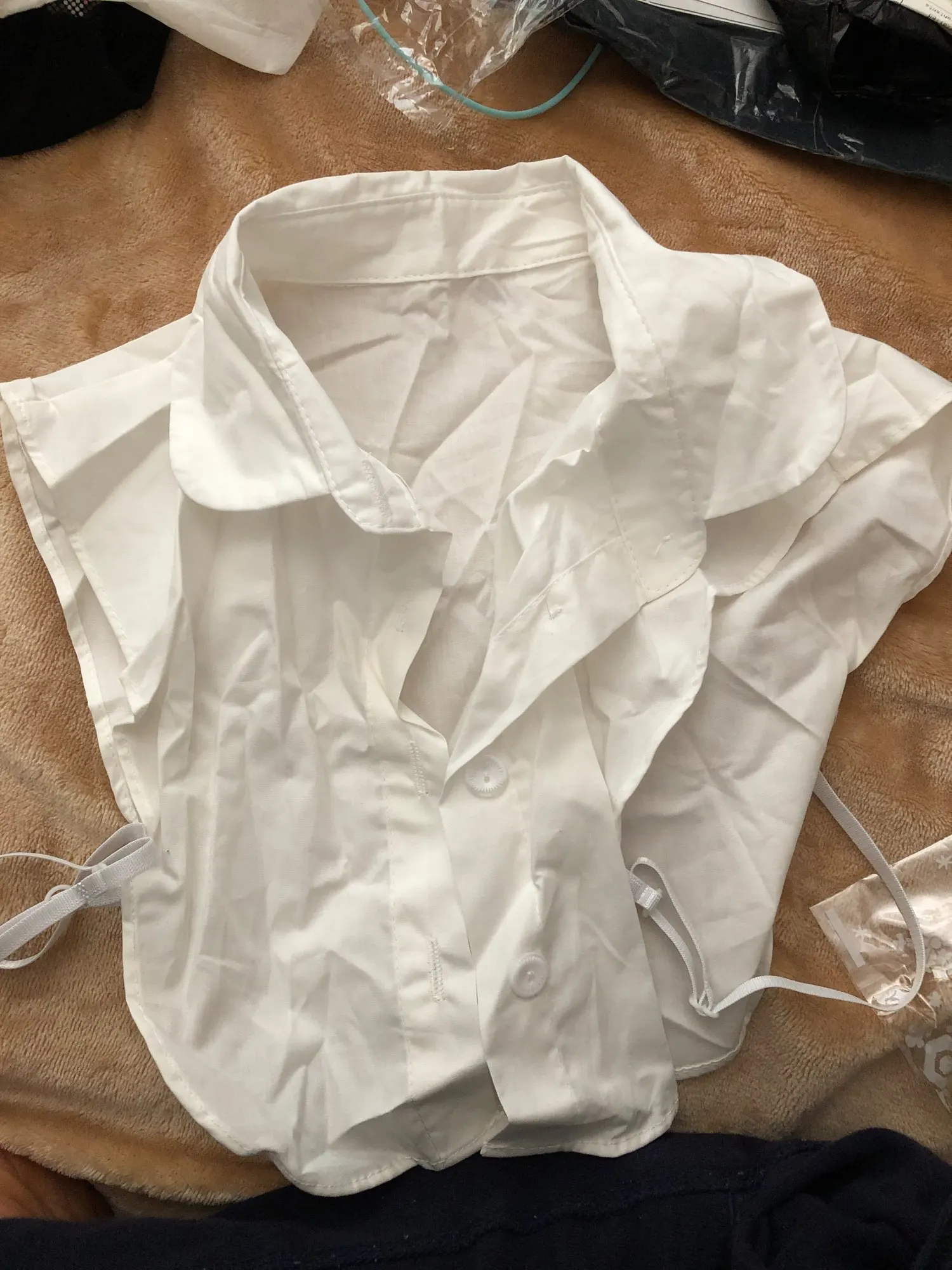 Отличное качество воротника, застегивается на пуговицах, через лямки одевается как жилет и прочно прилегает к одежде. Придаёт элегантный вид даже самому простому свитеру. Очень довольна покупкой. Огромная благодарность продавцу за оперативную отправку и отличное качество товара!