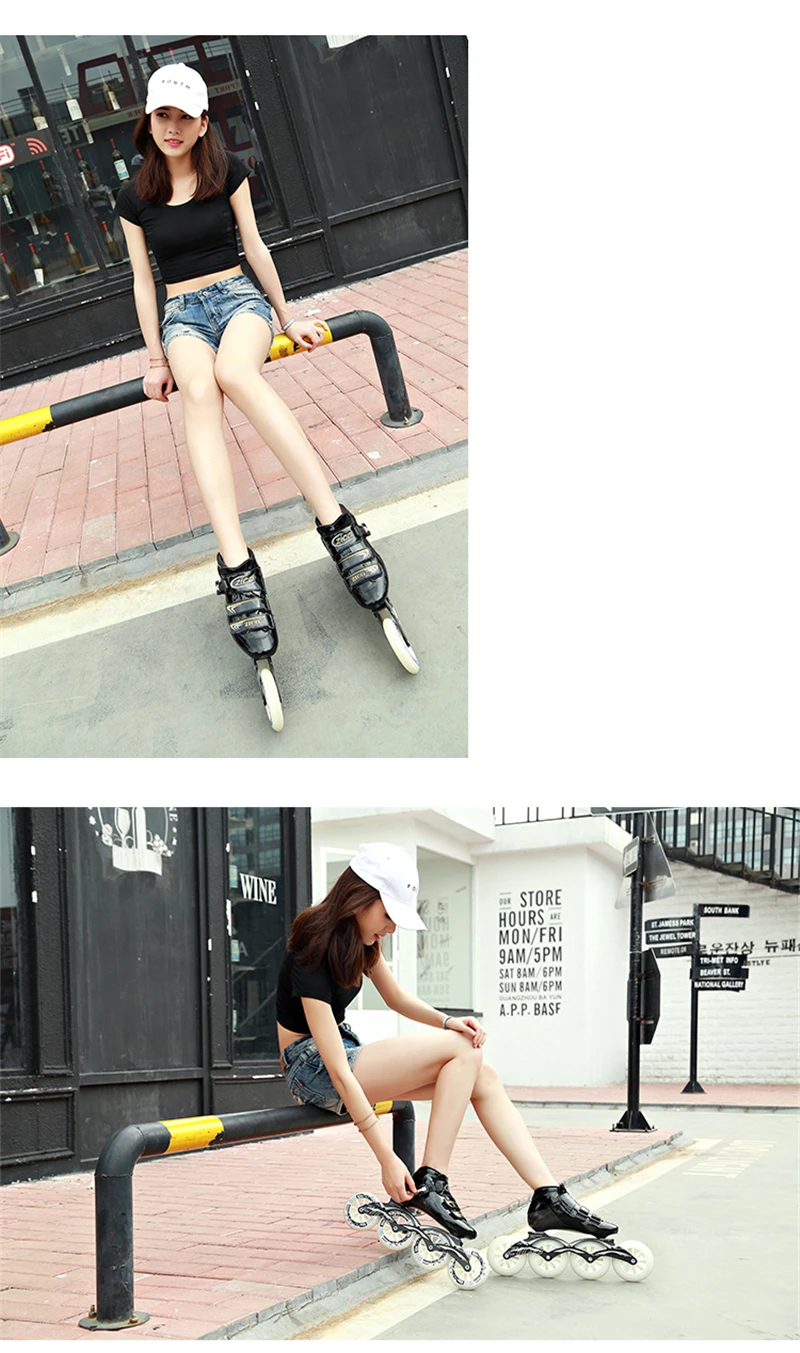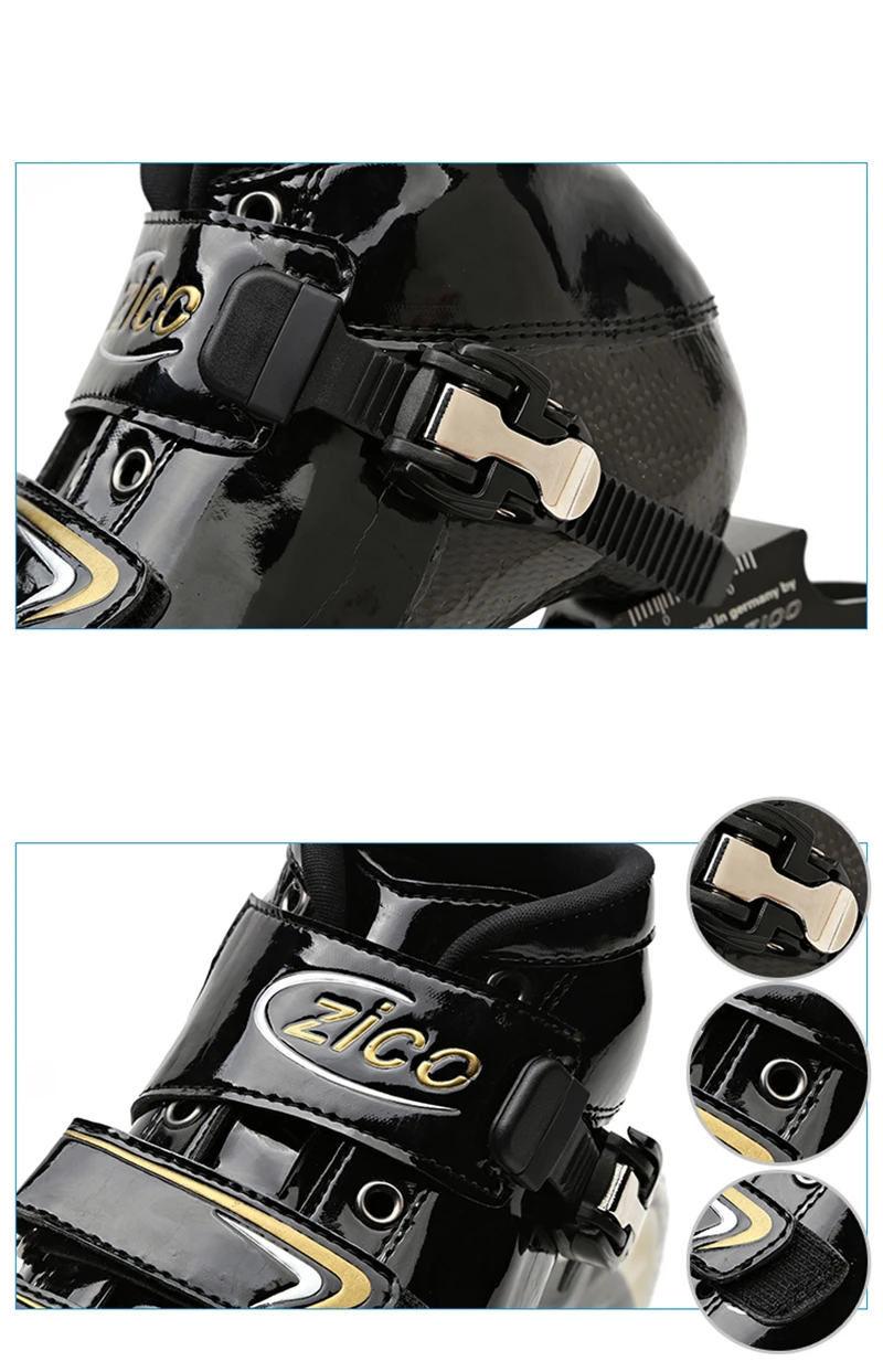 Скоростные коньки изготовлены из светильник и усиленного карбонового волокна; Колесо изготовлено из прочного и эластичного полиуретана 85A; Подшипник гладкий и менее устойчивый; Вы можете выбрать гладкую/шероховатую поверхность сапог, они имеют одинаковое качество и цену.