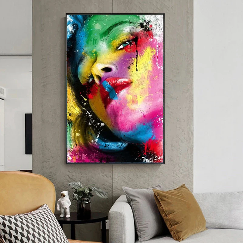 Абстрактные сексуальные губы, граффити, искусство на холсте, искусство, красочные постеры с изображением девушки и лица, художественные картины
