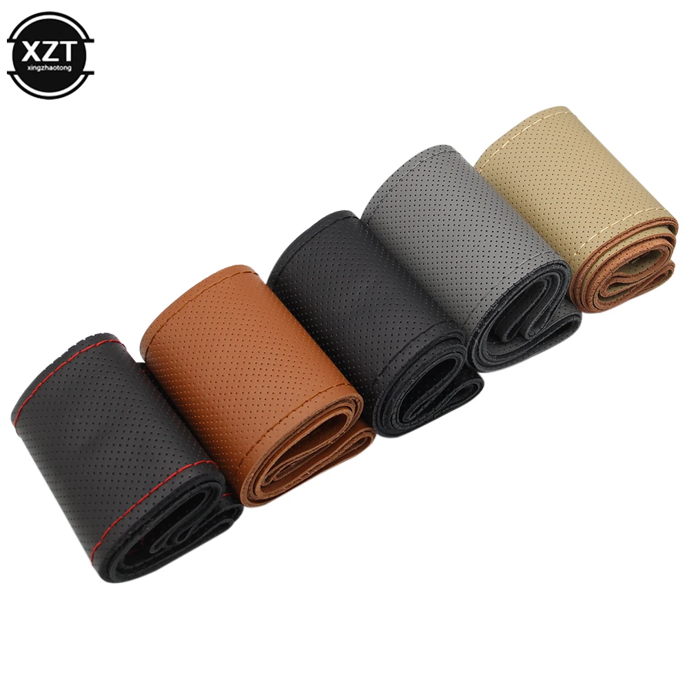 Натуральная кожа Чехлы рулевого колеса автомобиля Кожаная оплетка на руль рулевого колеса авто крышка с иглы и нити аксессуары для интерьера комплект