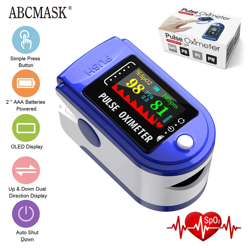 Особенности:Пальчиковый Пульсоксиметр для простой ежедневной проверки, может использоваться в семьях, школах, социальных центрах, общественных центрах и т. д.Предназначен для измерения насыщения крови кислородом и пульса взрослых или детей, и вы можете использовать его для измерения до или после занятий спортом.Оснащен четким tft-экраном, показывающим значение SpO2, частоту пульса (PR), импульсную волну и т. д.Простой в использовании, откройте зонд, затем вставьте один палец в зонд, включите оксиметр, через несколько секунд результат измерения можно прочитать непосредственно с экрана.Питание от 2 батареек AAA (не входят в комплект), Пульсоксиметр автоматически выключается в 8 с, если нет сигнала пальца.Компактный размер и легкий, с ремешком, удобно носить с собой и использовать в любое время в любом месте.Характеристики:Цвет: белый и синийТип дисплея: TFT дисплейЗаявленная точность SpO2: 70%-99%, ± 2% на этапе 80%-99%, ± 3% на этапе 70%-79%PR заявленная точность: 30-240bpm, ± 1bpmИсточник питания: 2 * батарейки типа "ААА" (не входит в комплект)Рабочая температура: 5 ℃-40 ℃Рабочая Влажность: 15%-80%Атмосферное давление: 70kPa-106kPaТовар Размеры: 6*3,2*3,2 см/2,4*1,3 * 1.3inВес изделия: 25 г/0,88 унцийПосылка Размеры: 7*7*4 см/2,8*2,8 * 1.6inПосылка Вес: 41 г/1,4 ozУпаковочный лист:1 * оксиметр1 * ремешок1 * Руководство пользователя (на английском языке)