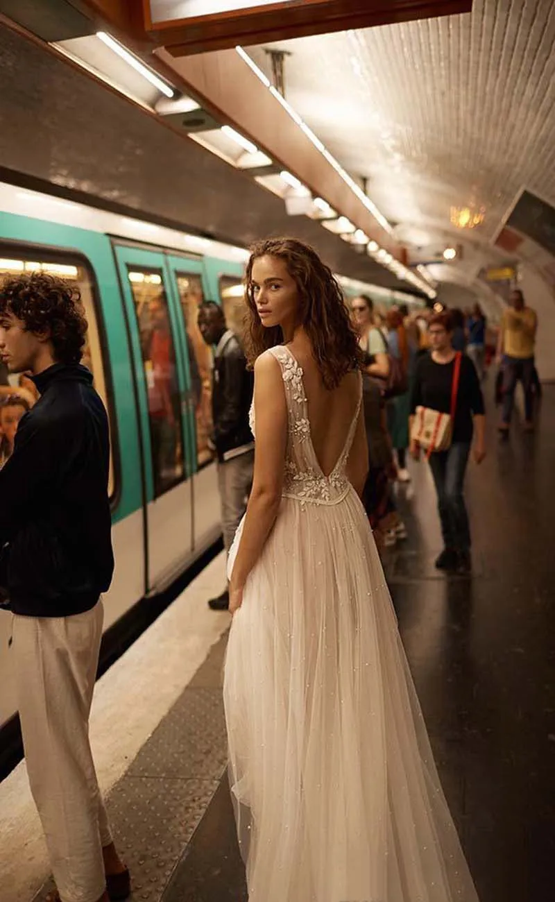 Простые Свадебные платья с v-образным вырезом из бисера, кружевное фатиновое платье, а-силуэт Свадебные платья Свадебное пляжное платье Свадебные платья novia