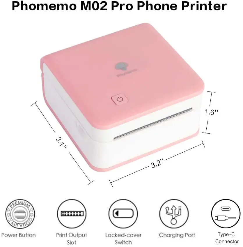 300dip Высокое разрешение-мини-принтер использует 300 точек/дюйм печатающую головку и 5V-2A интерфейс, что делает ваше качество печати более выдающимся. Вы можете почувствовать себя более текстурированным из прозрачных изображений.Мощное приложение-поддержка веб-печати, микроофисная печать документов, распознавание текста OCR. Все Бесплатные Веселые шаблоны и графика. Используйте этот мобильный принтер, чтобы делать заметки, журнал пули, печатать фотографии или любое ремесло DIY.Никогда не пробирается и не работает с эксклюзивной бумагой s-с регулируемым держателем бумаги, никогда не беспокойтесь о бумажных пробках. Phomemo M02 Pro phone printer работает с бумагой с голубым изображением, красочной наклейкой, даже прозрачной и полупрозрачной бумагой. Сделайте ваши фотографии более особенными!Совместимость с термопечатью Bluetooth-принцип термопечати устраняет необходимость печати ленточных чернил, позвольте себе представить радость печати! Совместим с подключением Bluetooth 4,0. Совместимость с Android 4,0, для IOS 8,0 или выше.Портативный Размеры и модный дизайн-мини Размеры принтера "Mei Qing" (3,3*3,3*1,6 дюймов) Встроенный 1000 мАч аккумулятор, который вы можете взять его в любом месте! Модная форма, прекрасный подарок для ваших друзей и семьи.