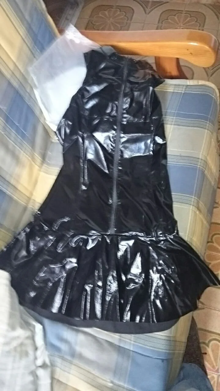 Набор включает: 1 платье, 1 стринги Состояние: Новинка без бирки Материал: Из искусственной кожи + спандекс Цвет: Черный (как показано на фотографии) Длина платья: Мини