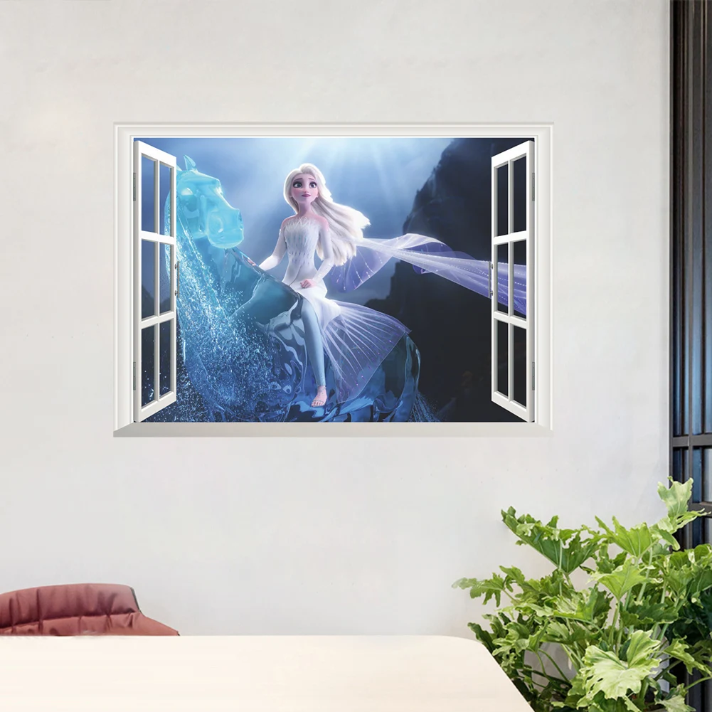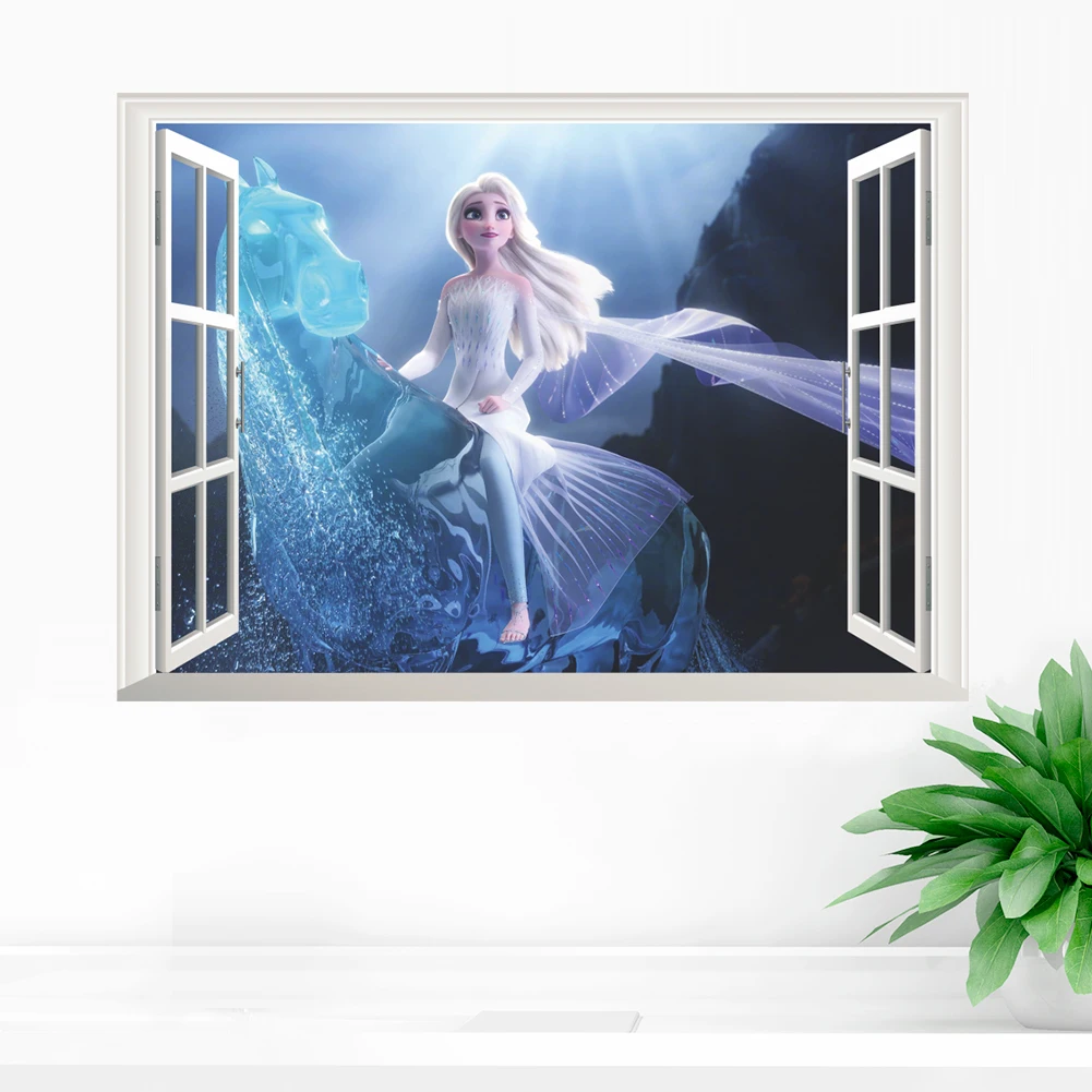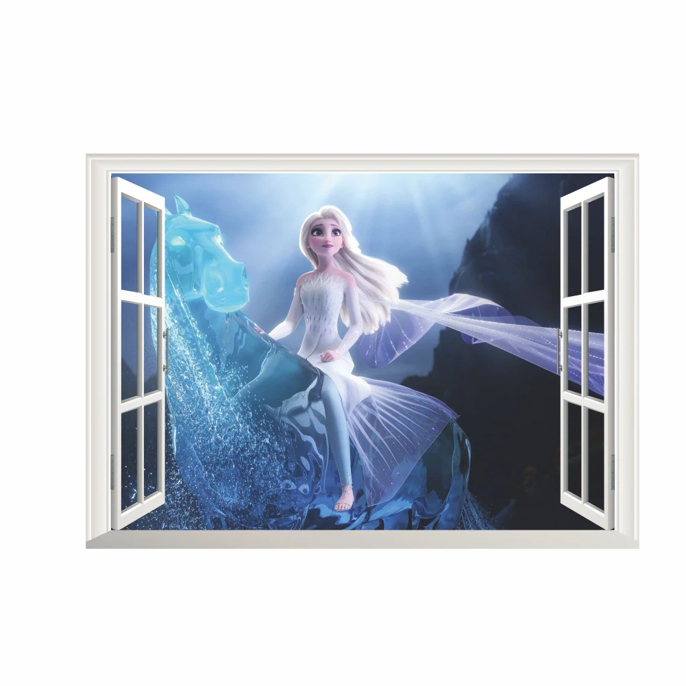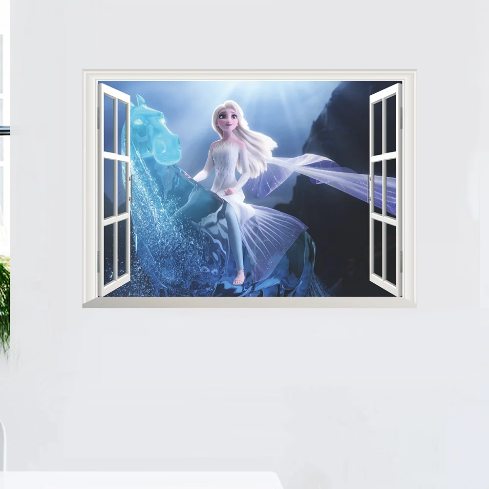 Дисней Замороженные 2 Эльза 3D окна наклейки на стену для детской комнаты спальни детского сада украшения стены Принцесса мультфильм кино плакаты