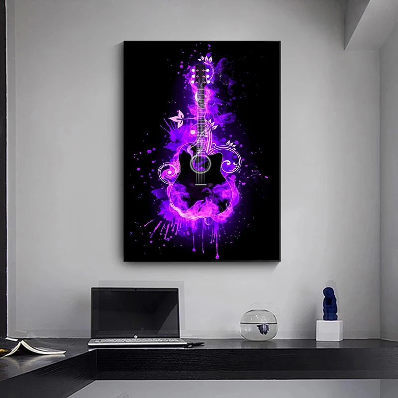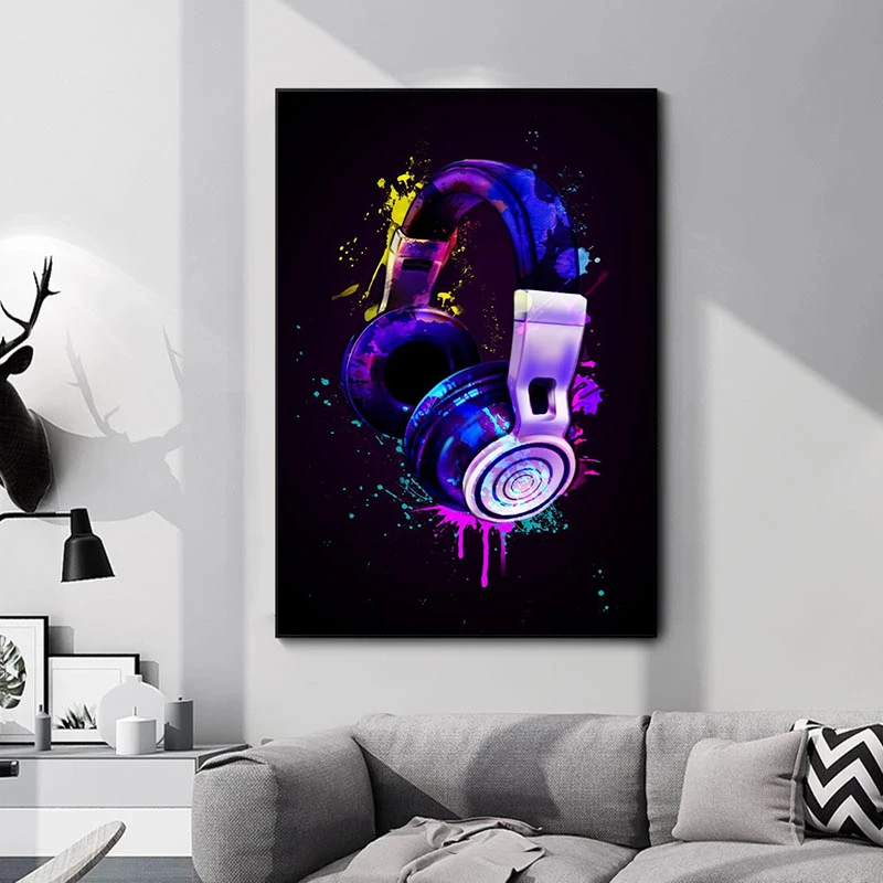 Неоновый геймпад, Картина на холсте, Постер для игр, принты, настен...