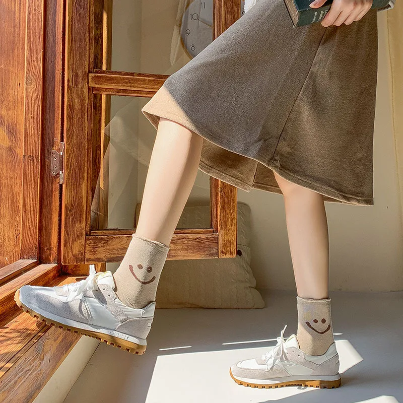 3 пары/уп.зимние женские утолщенные теплые носки со смайликом в стиле Харадзюку высококачественные шерстяные модные хлопковые носки