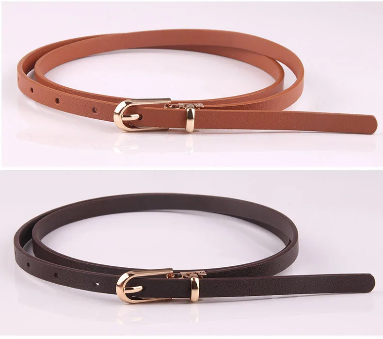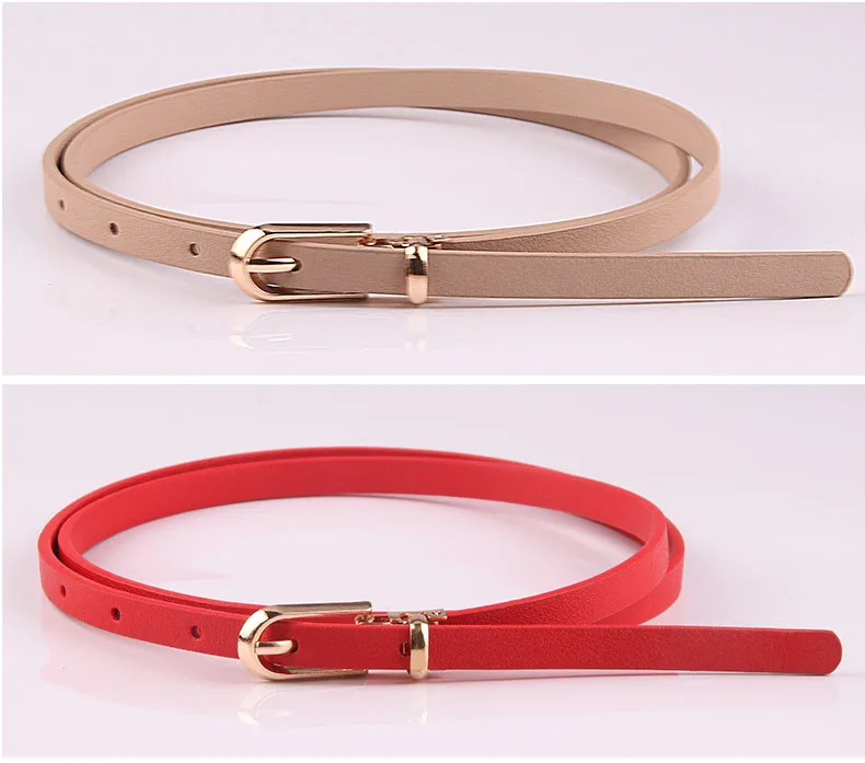 Ремень женский тонкий из искусственной кожи, с пряжкой, разных цветов