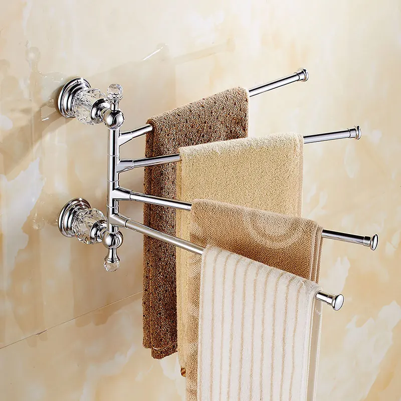 Европейский Золотой Хрустальный вращающаяся стойка для полотенец, подвижная вешалка для полотенец в ванной, Поворотная вешалка для полотенец, полированный держатель для полотенец
