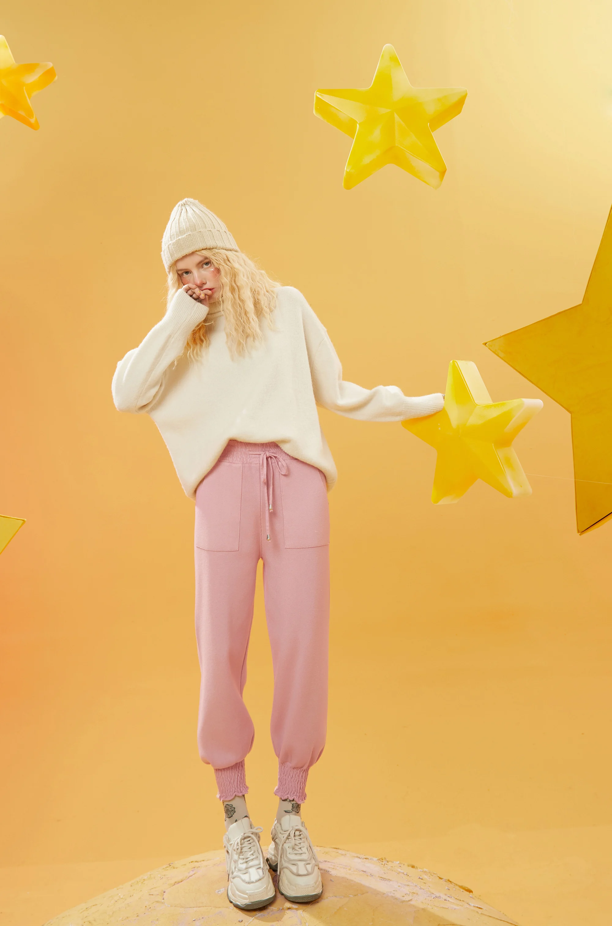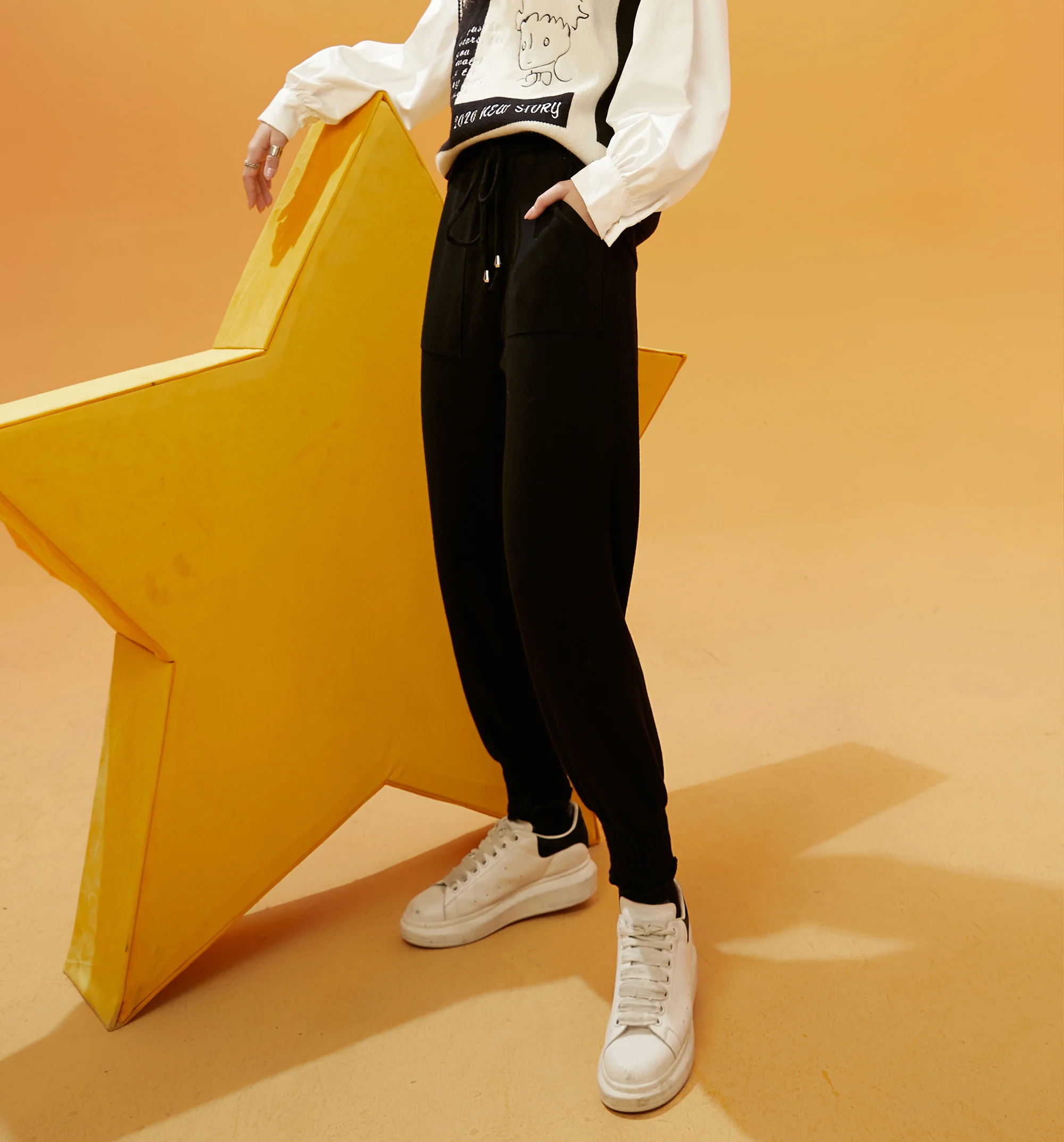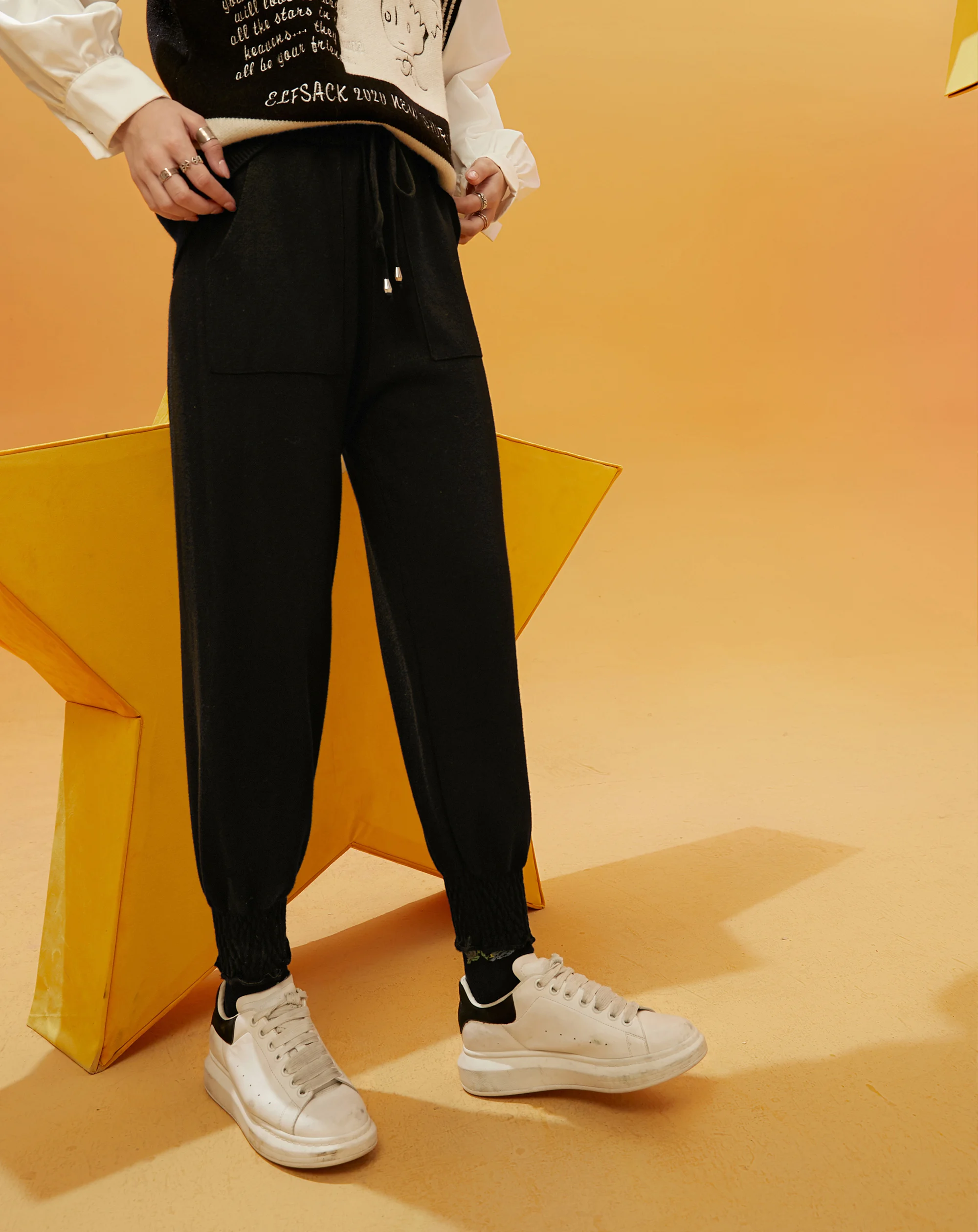 ELFSACK однотонные Прямые повседневные женские трикотажные брюки, зима 2021