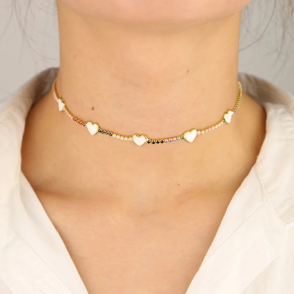 Цепь-чокер женская с эмалью, очаровательное теннисное ожерелье с ку...