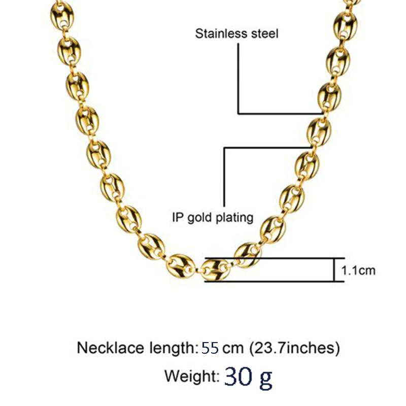 Цепочка US7 из звеньев кофейных зерен 11 мм, ожерелье для мужчин, ц...