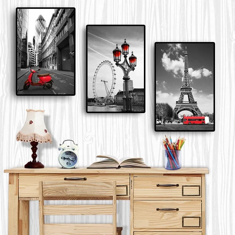Черный, белый цвет Эйфелева башня Колесо обозрения настенный художественный холст картина Плакаты и принты настенные картины для Гостиная Куадрос