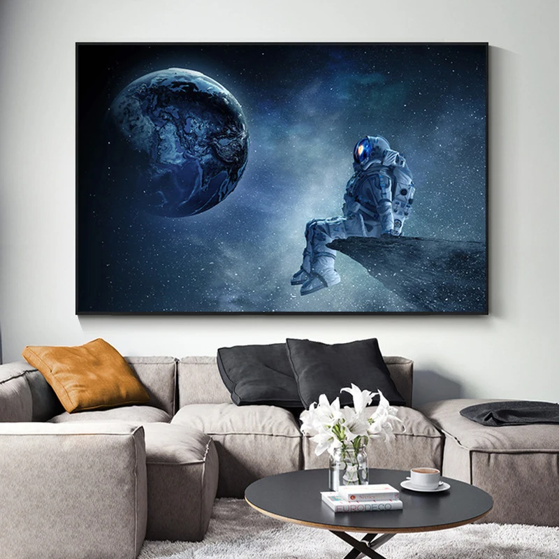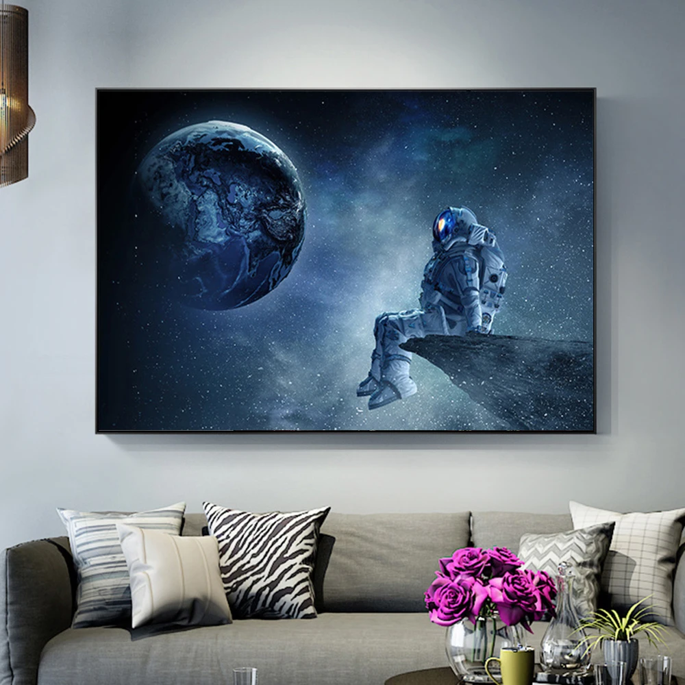 Астронавт, сидя в космосе, холст, картина, Куадрос, плакаты, печать, настенное искусство для гостиной, домашний декор (без рамки)