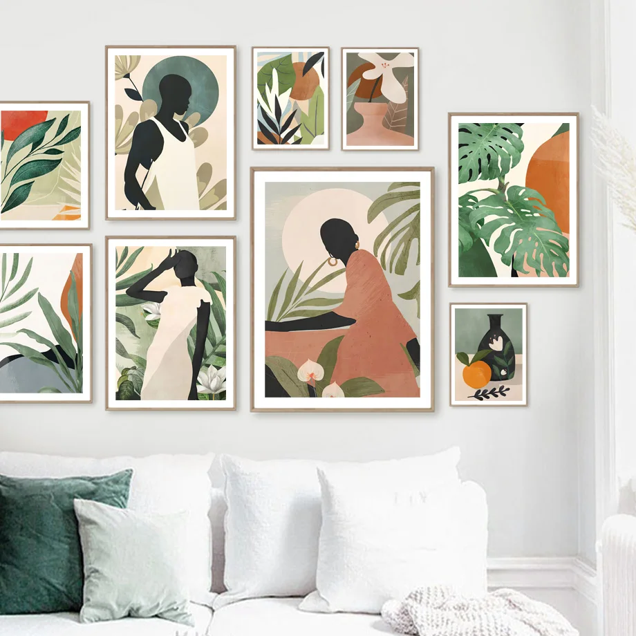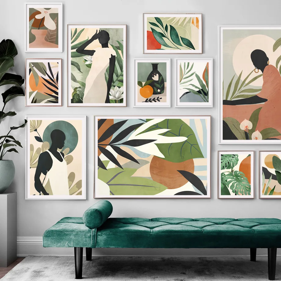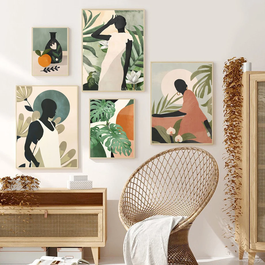 Винтажные абстрактные картины на холсте с изображением растений, листьев монстры, девушки, в скандинавском стиле, настенные картины для украшения гостиной