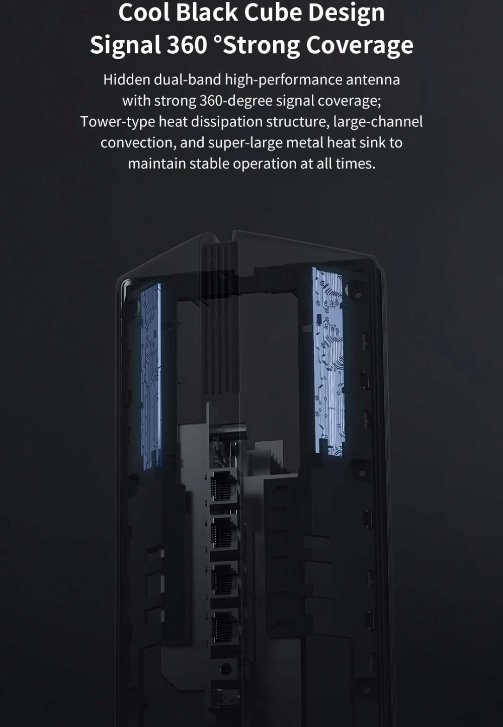 Скрытая Двухдиапазонная высокопроизводительная антенна с сильным покрытием сигнала на 360 градусов; Конструкция рассеивания тепла башенного типа, крупноканальная конвекция, И супер-большой металлический радиатор для поддержания стабильной работы в любое время.