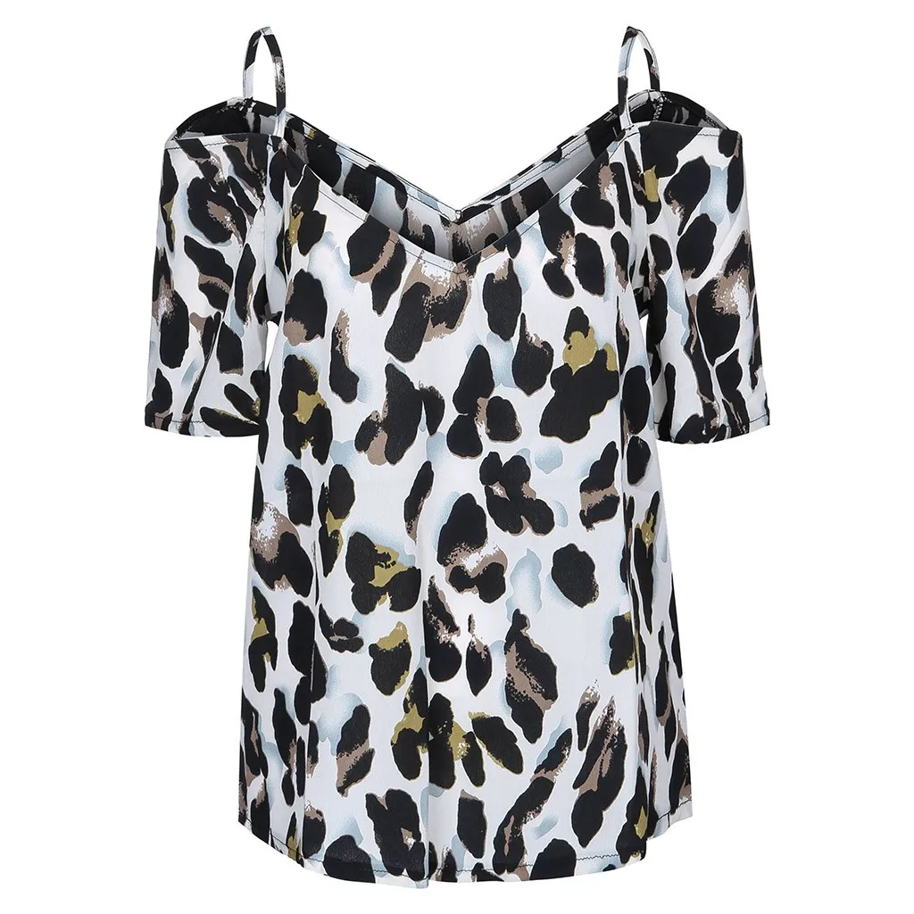 Женские топы Летняя женская обувь с леопардовым принтом с открытыми плечами с короткими рукавами футболка топы размера плюс женский камзол жилет женская одежда