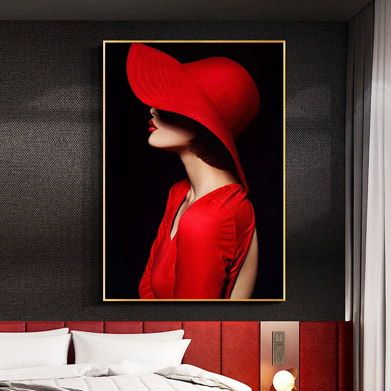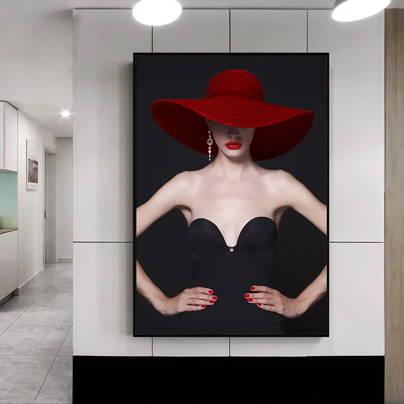 Плакат cnpaint, настенное искусство, печать на холсте, рисунок, модная девушка с шляпой, портрет красоты, картина для гостиной, домашний декор