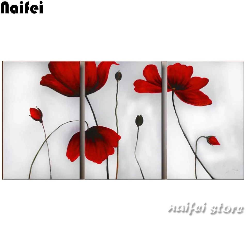 3 шт. 5D Diy Алмазная Картина абстрактный Маковый огненно-красный Цветущий цветок набор крестиков полная дрель вышивка мозаика Триптих,