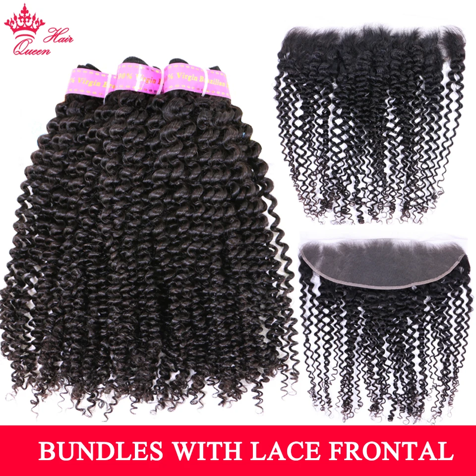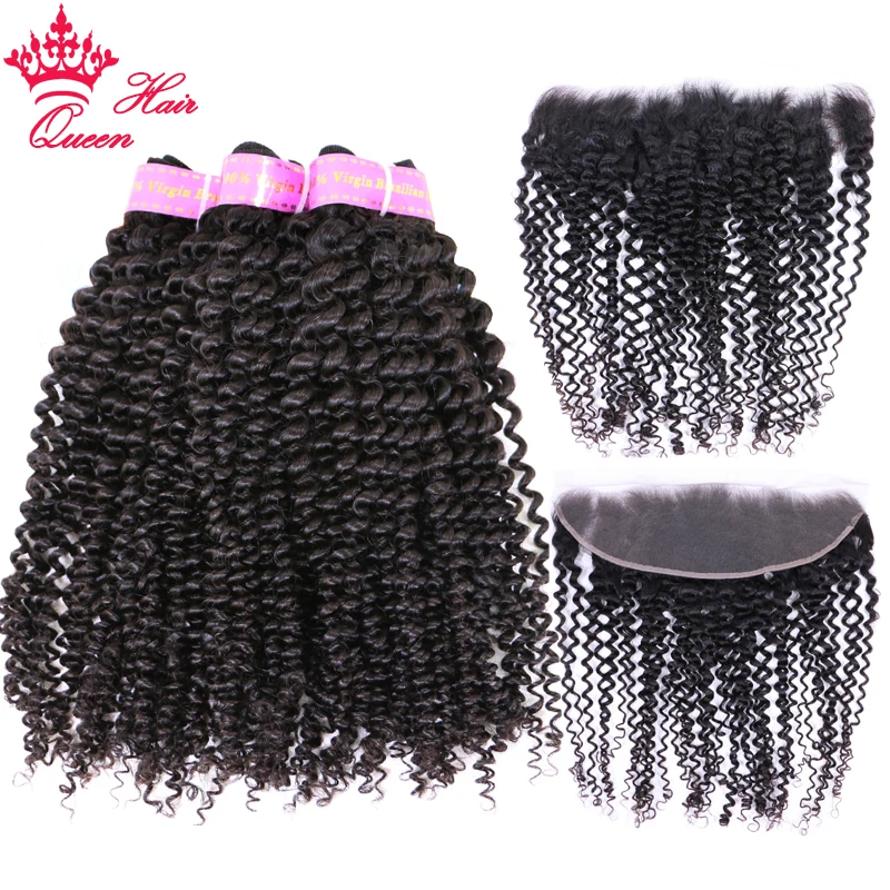Королевские волосы, Официальный магазин, пучки, бразильские Курчавые Кудрявые с фронтальными натуральными человеческими волосами, пучки с 13X4 ухом на фронтальной сетке