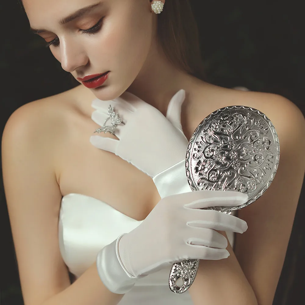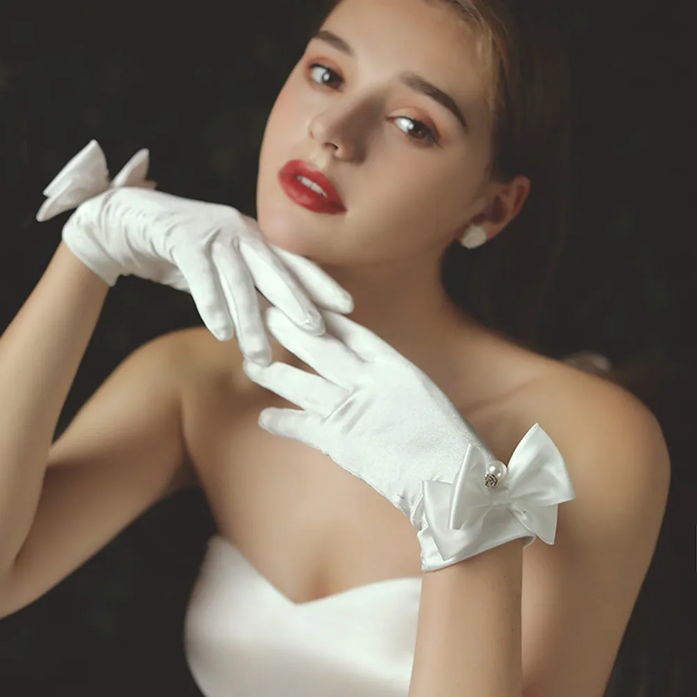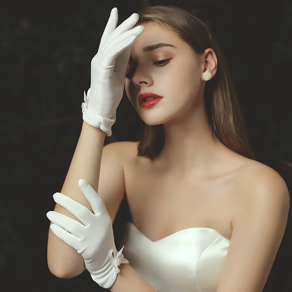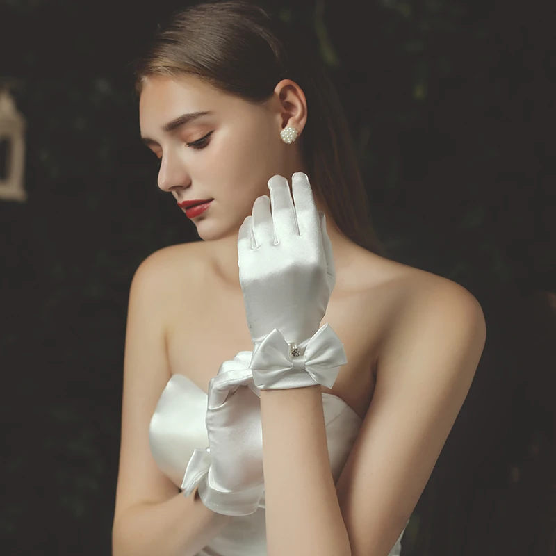 Элегантные Короткие Свадебные перчатки HONGFUYU 2022 перчатки цвета слоновой кости черные кружевные атласные перчатки свадебные аксессуары перчатки кружевные