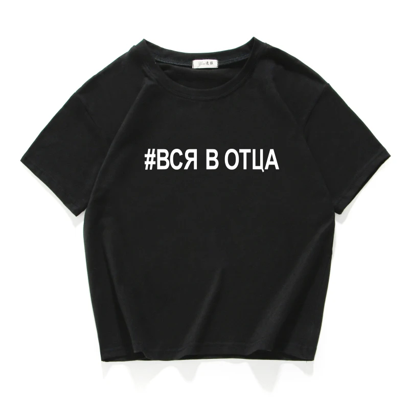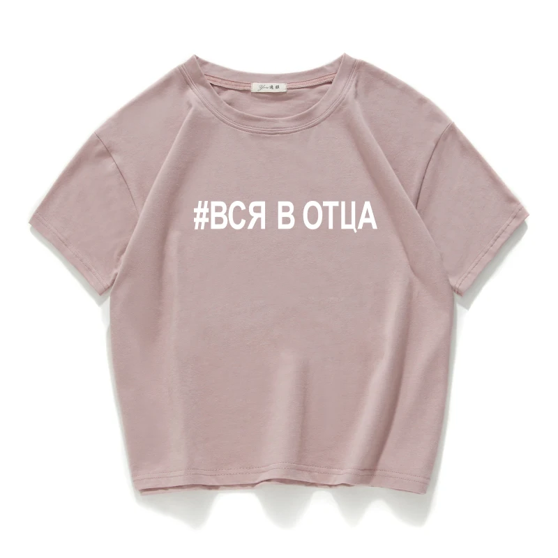 Кроп-топ все в папе с русскими забавными буквами, повседневная короткая футболка из 100% хлопка, женские футболки, летняя женская одежда в стиле Харадзюку