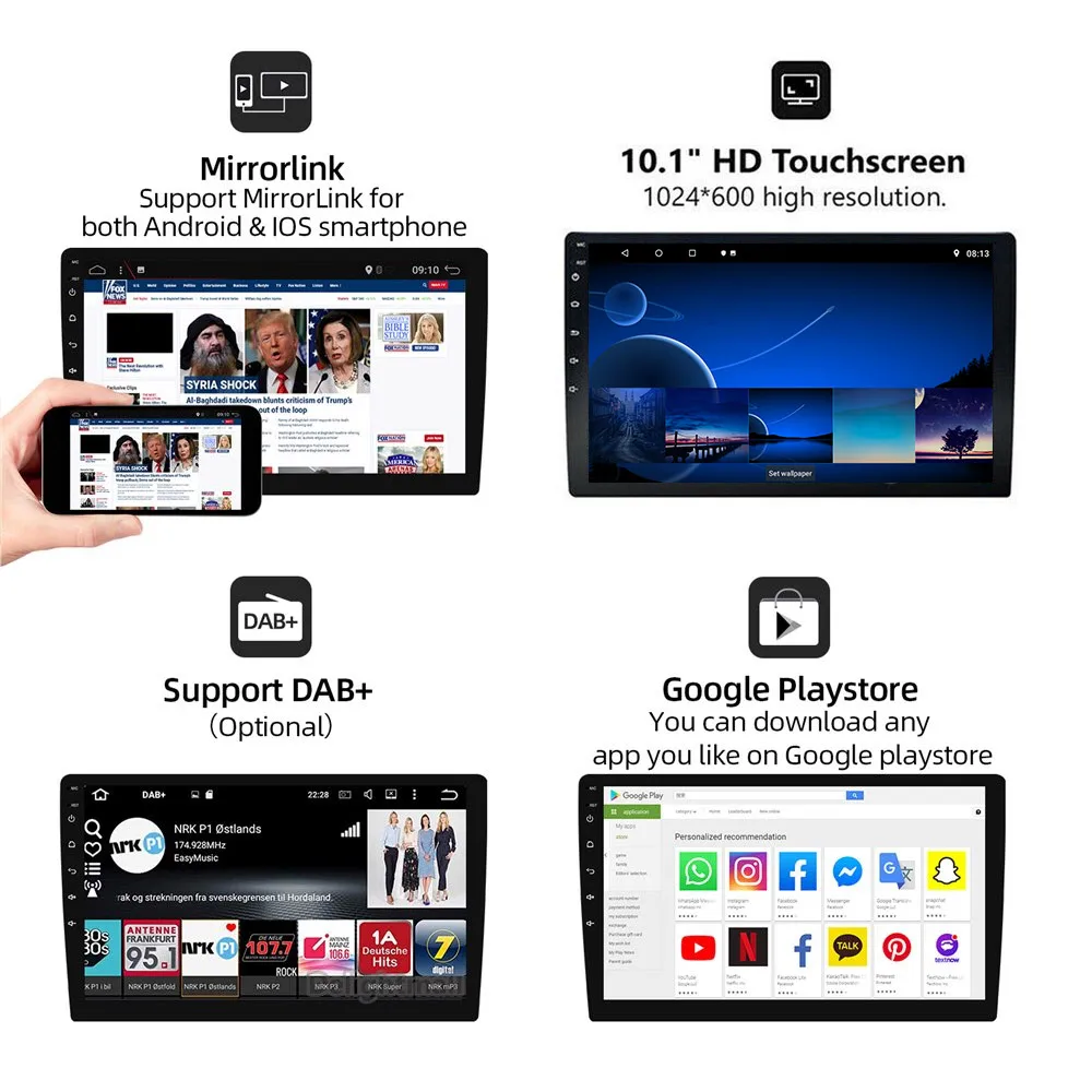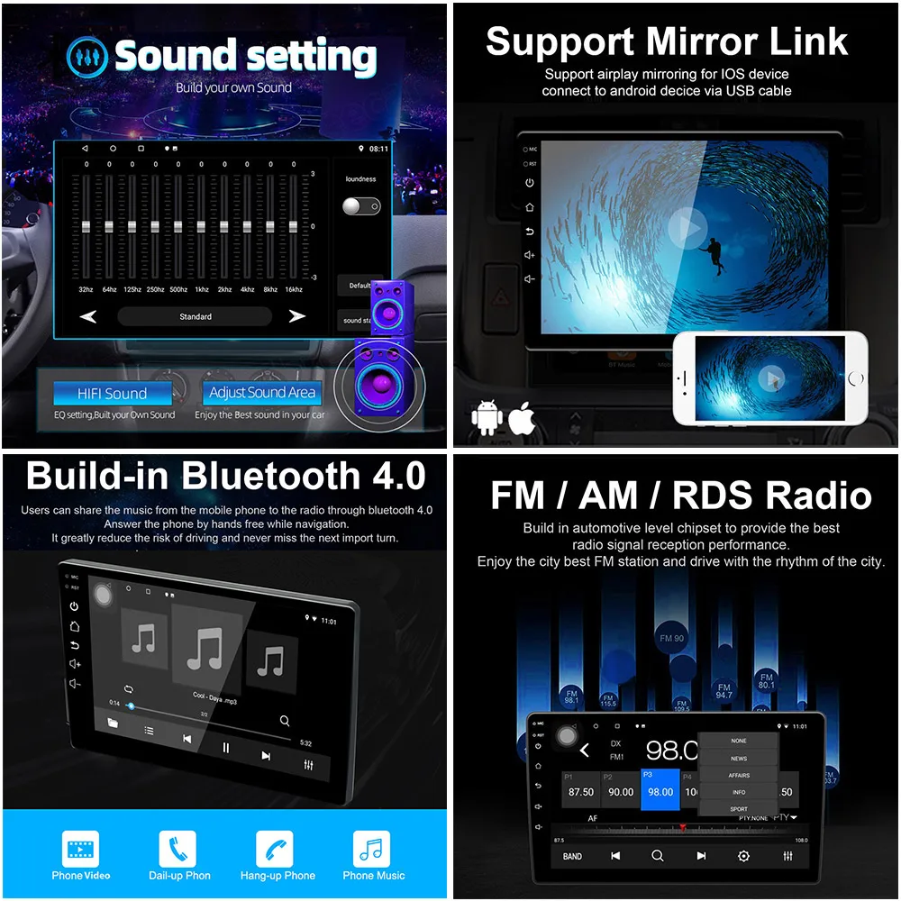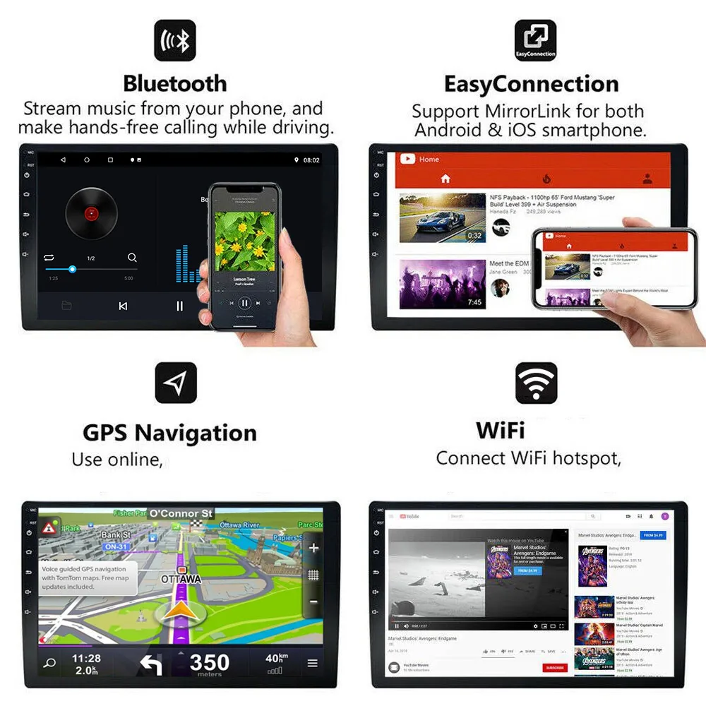 2 din Android 10 Car Radio Quad CoreGPS Navigation Bluetooth 4.0 WIFI AM/FM SWC USB Mirror Link