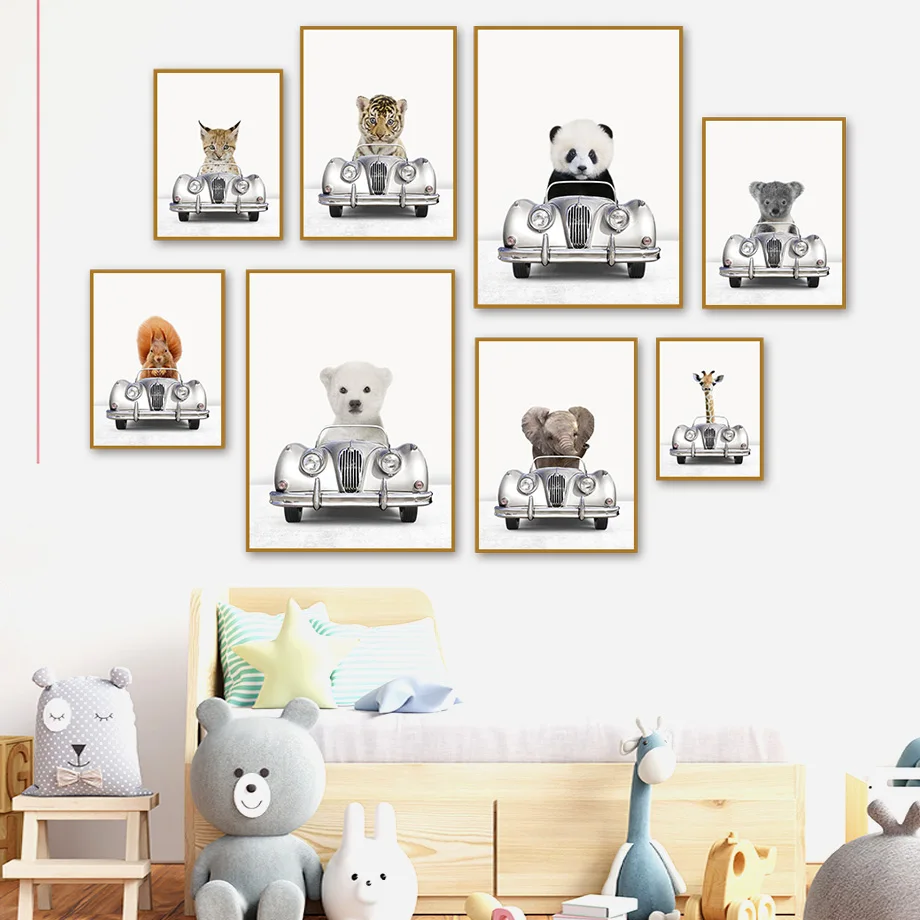 Детский Тигр слон жираф енот ягненок Лев Кролик плакаты и принты На...