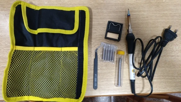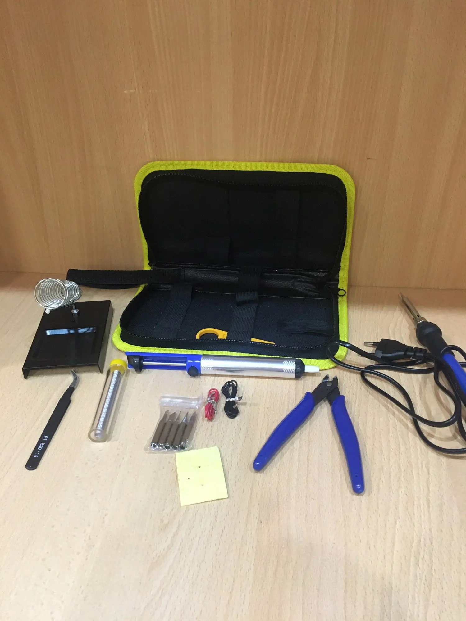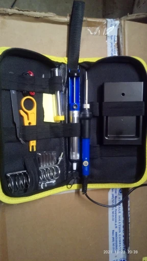 Паяльник для мелких деталей. Брал специально с чехлом, что бы не валялась мелочевка. Зачем то в комплект положили два куска проволоки, непонятно. Есть кусачки и хрень для очистки изоляции, и какой то насос. Хрен знает для чего. Пачльник греется быстро, буквально 30 сек. Короче, можно лишнее выкинуть и самому доукомплектовать. А, еще, подставочка тоже хорошоя. Рекомендую, доставка быстрая