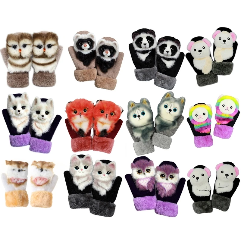 Милые вязаные варежки из кроличьего меха плюшевые перчатки без пальцев перчатки с откидной крышкой перчатки для вождения зимние мягкие теплые плотные перчатки для женщин и девочек