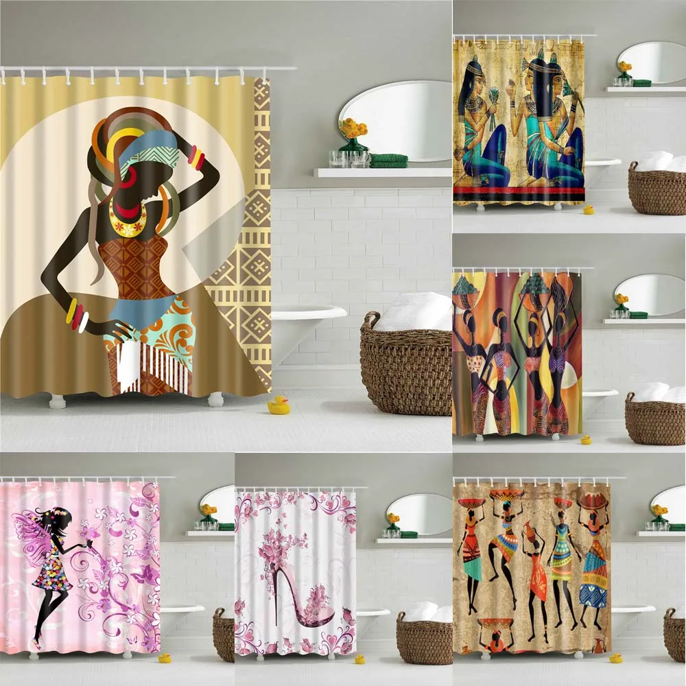 Штора для душа африканская Женская, водонепроницаемый занавес из по...
