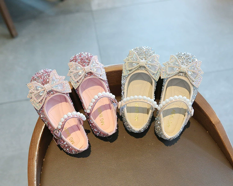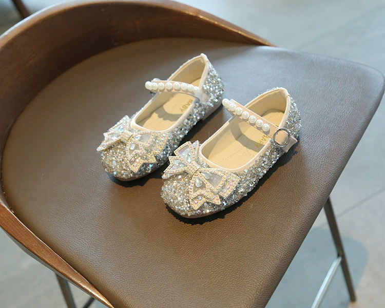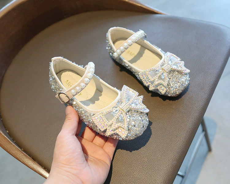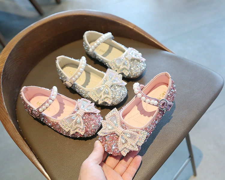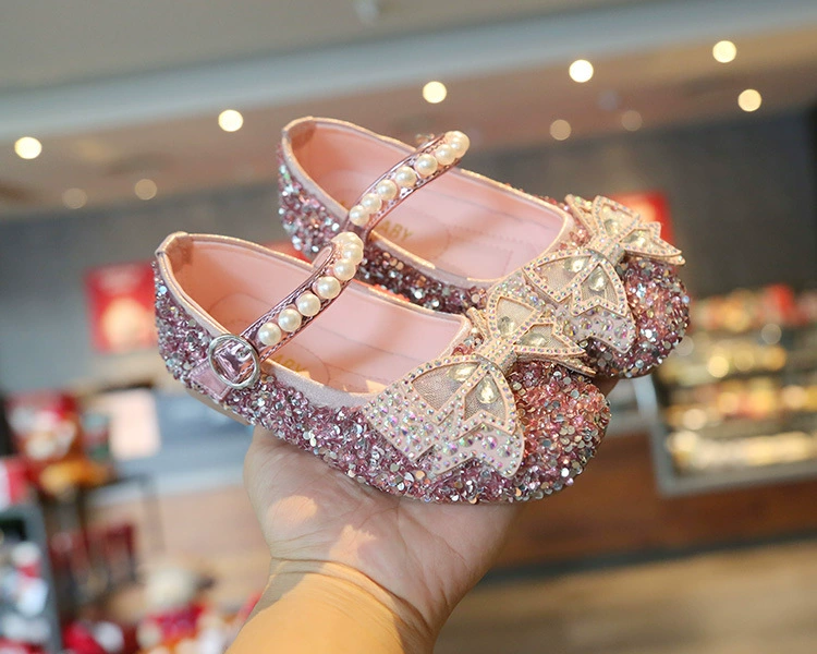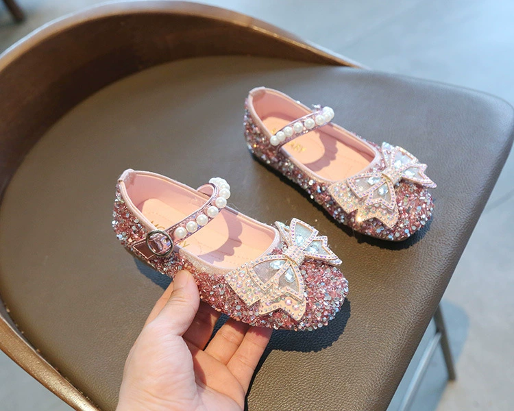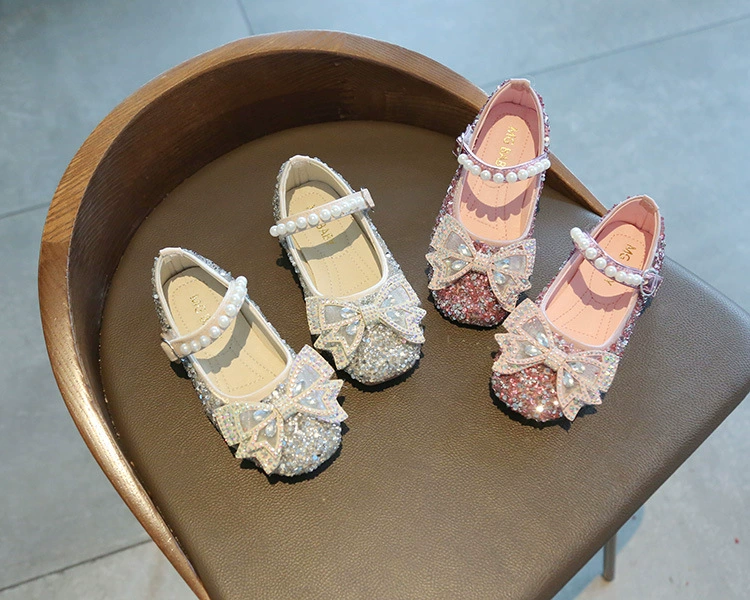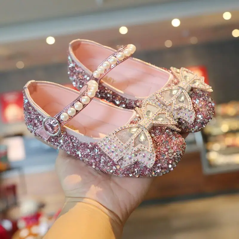 SKHEK обувь для малышей, Осенняя обувь для маленьких девочек, модные детские туфли Стразы с блестками, обувь принцессы с жемчугом и бантом, кожаная обувь для девочек на плоской подошве