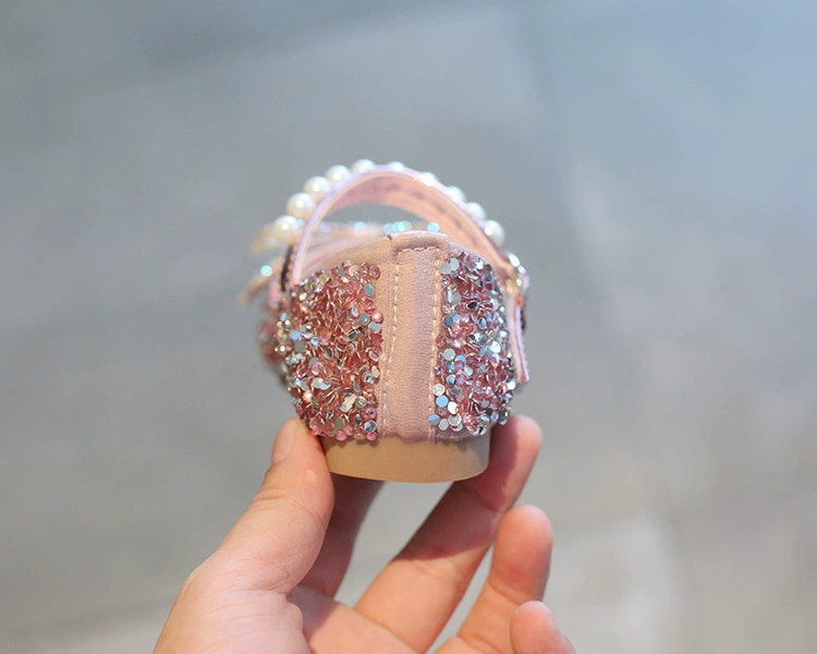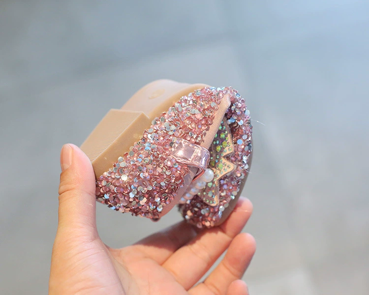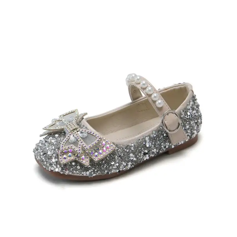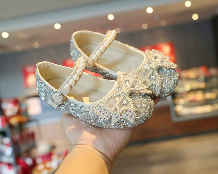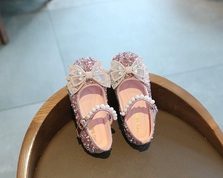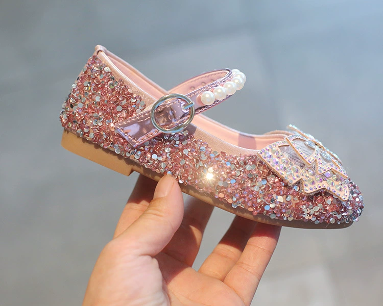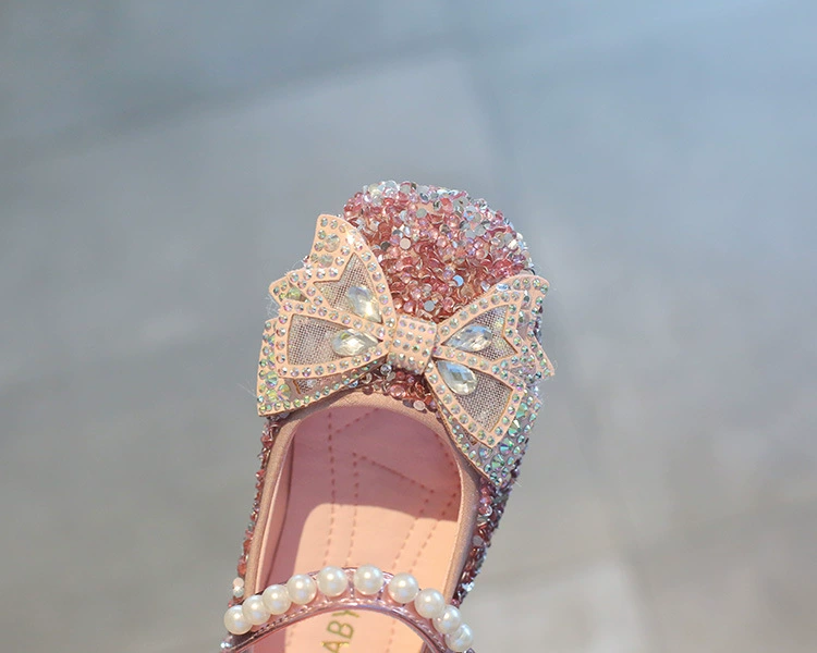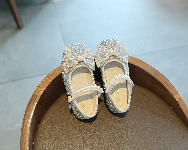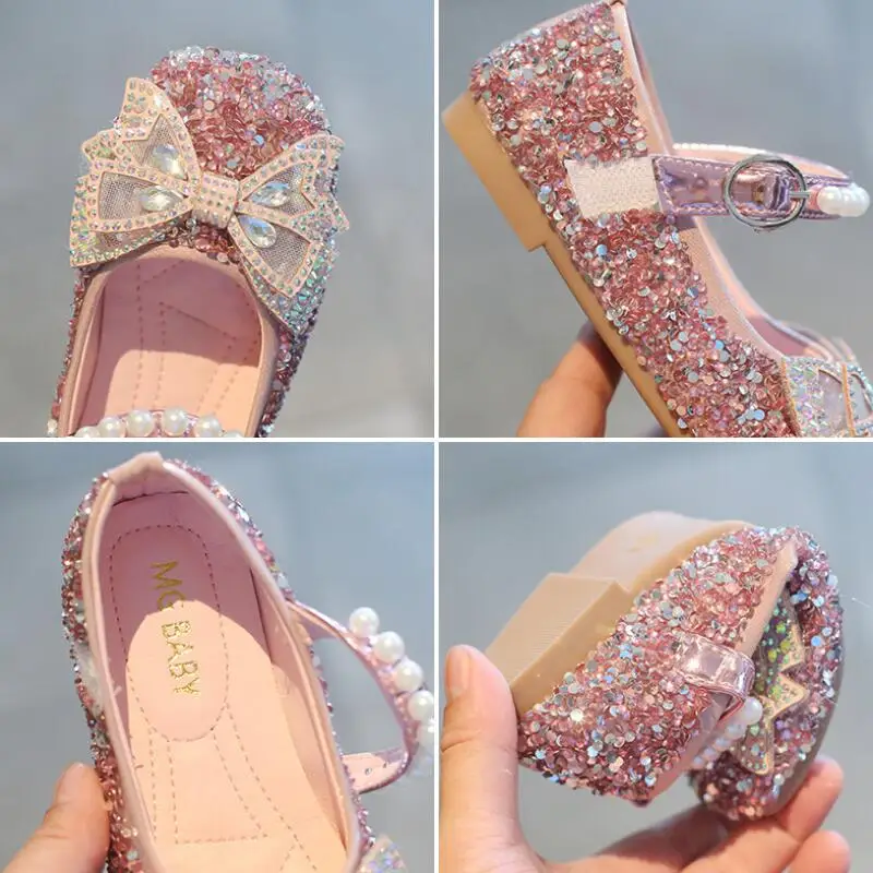 SKHEK обувь для малышей, Осенняя обувь для маленьких девочек, модные детские туфли Стразы с блестками, обувь принцессы с жемчугом и бантом, кожаная обувь для девочек на плоской подошве