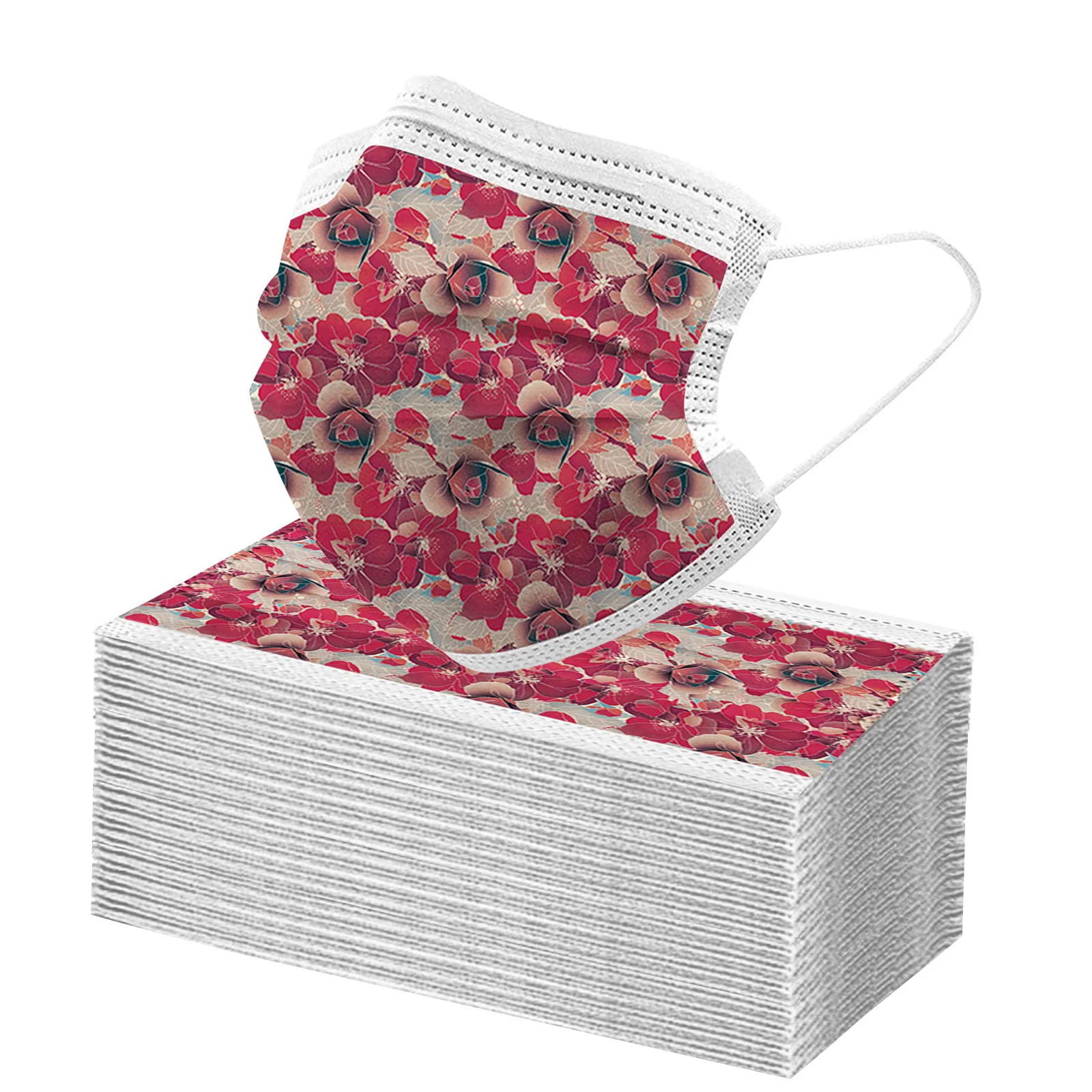 Маска медицинская многоразовая с цветочным принтом, 50 шт.