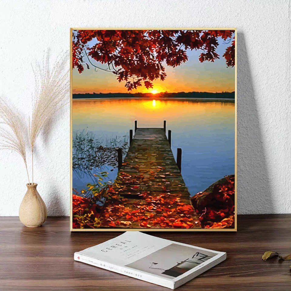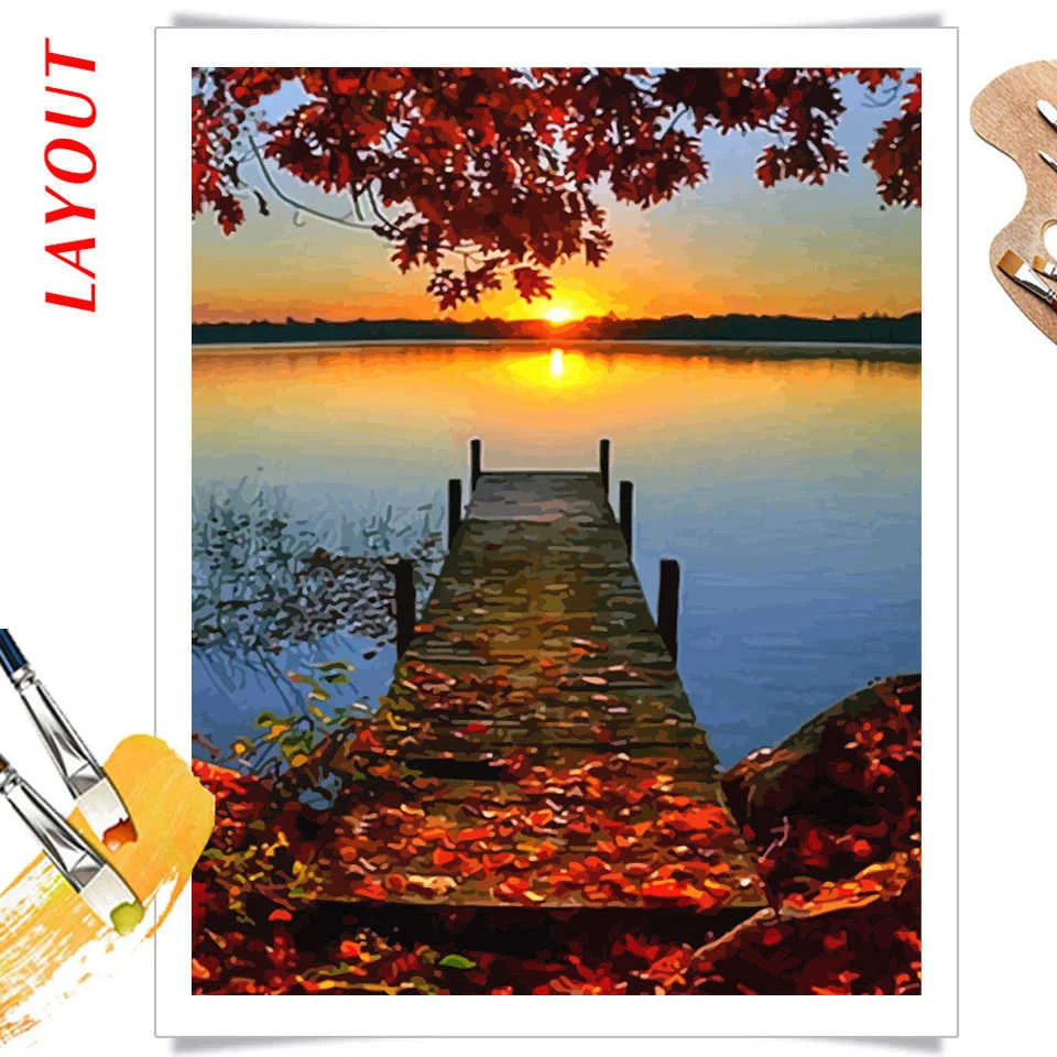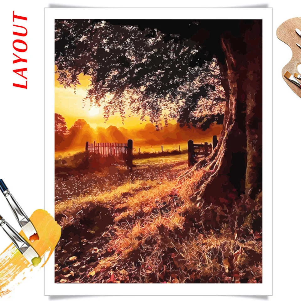 AZQSD картина по номерам Дерево Ручная роспись по номерам осенний Декор для дома с лесным пейзажем Diy подарок холст картина наборы