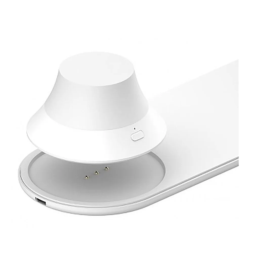 Ночник заряжается от беспроводного зарядного устройства. Просто положите его, и он присоединится с помощью магнита. Полный заряд ночника осветит вашу комнату белым светом на 11 часов и теплым на 24 часа.