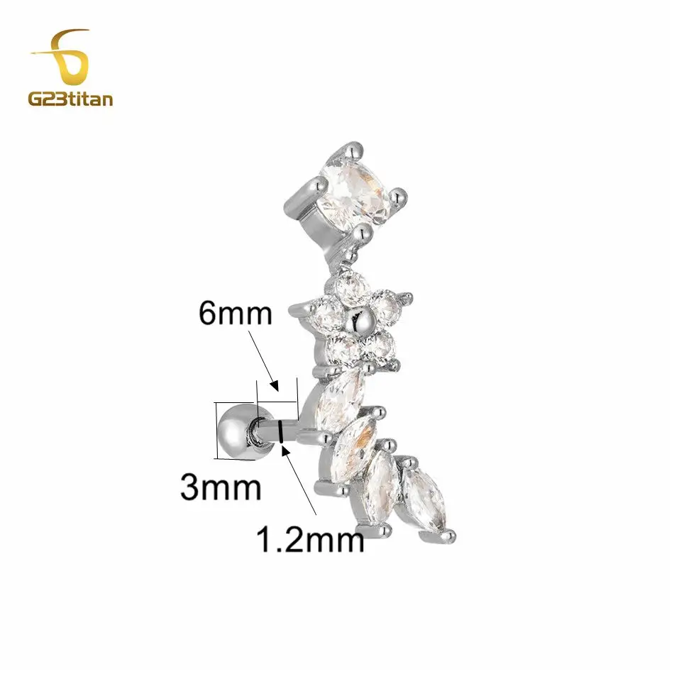 Романтический бриллиантовый цветок, бриллиантовый Хеликс, украшение для пирсинга тела 16G