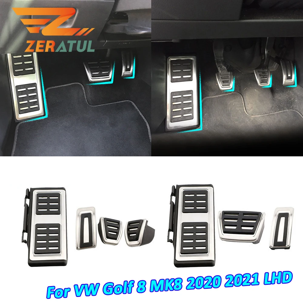 Автомобильные педали тормоза Zeratul из нержавеющей стали, защитная колодка для педали газа, детали для Volkswagen VW Golf 8 MK8 2020 2021 LHD AT MT