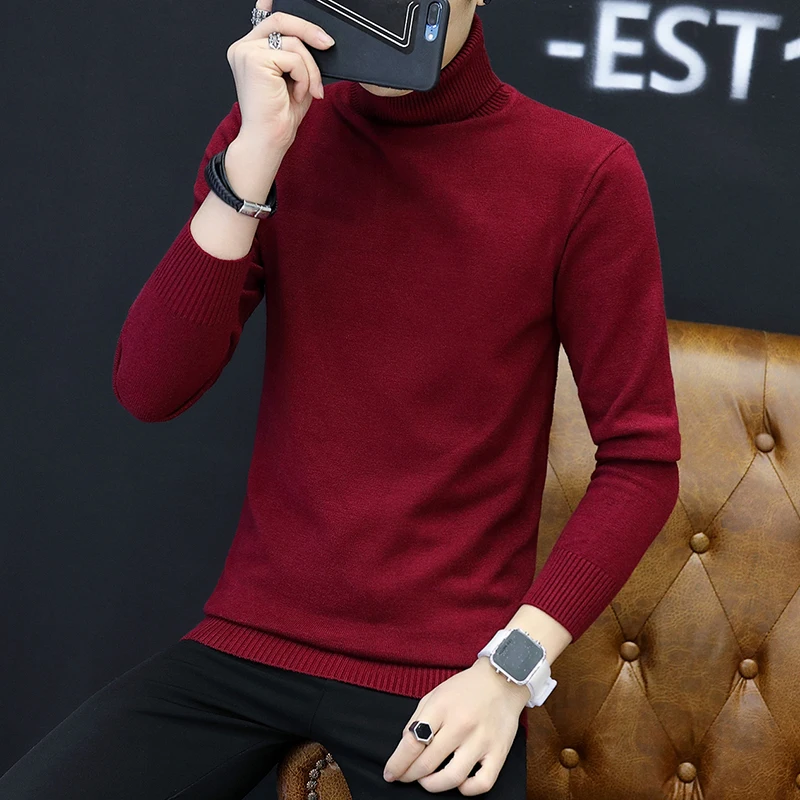 Новинка осенне-зимний мужской свитер с высоким воротником облегающа...