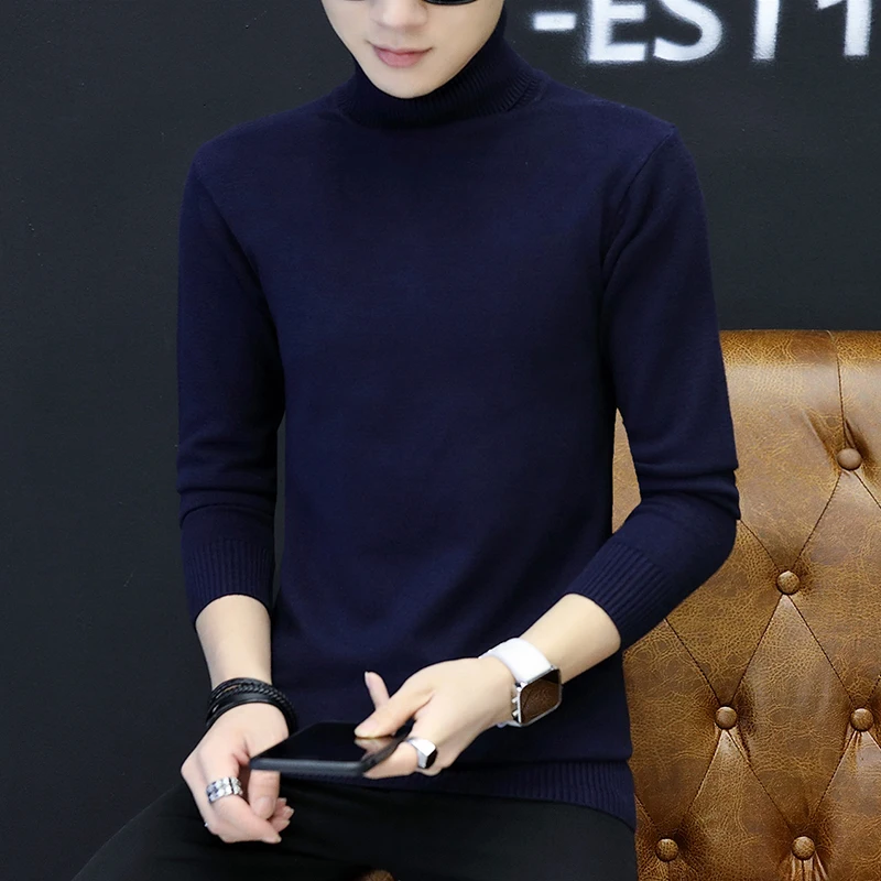 Мужской трикотажный свитер с длинным рукавом и высоким воротом