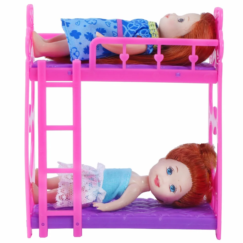 1 шт. аксессуары для кукол симпатичная пластиковая розовая фиолетовая двухъярусная кровать мини кукольная мебель для куклы Келли Детские куклы игрушечный домик