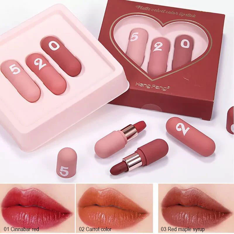 3 шт.компл. мини капсульные бархатные матовые губные палочки длительное увлажнение водостойкая немаркирующая помада антипригарная чашка косметические губы