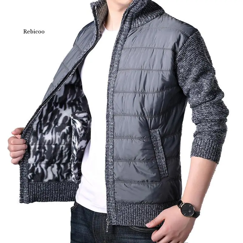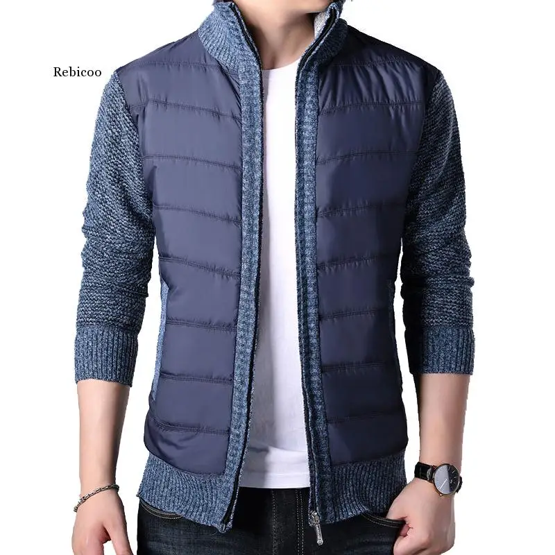 Мужской зимний флисовый теплый свитер, куртка модный пэчворк тонкий вязаный кардиган, свитер мужской, повседневное, с карманами, верхняя одежда для детей утепленная куртка