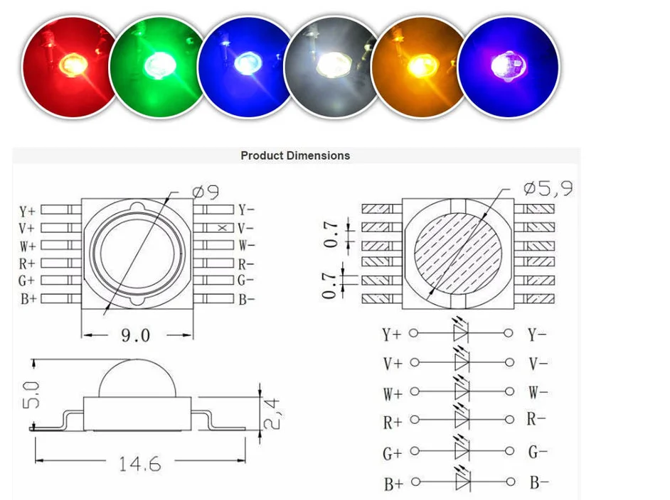 Model NumberRGB RGBW RGBWY RGBWYV LED