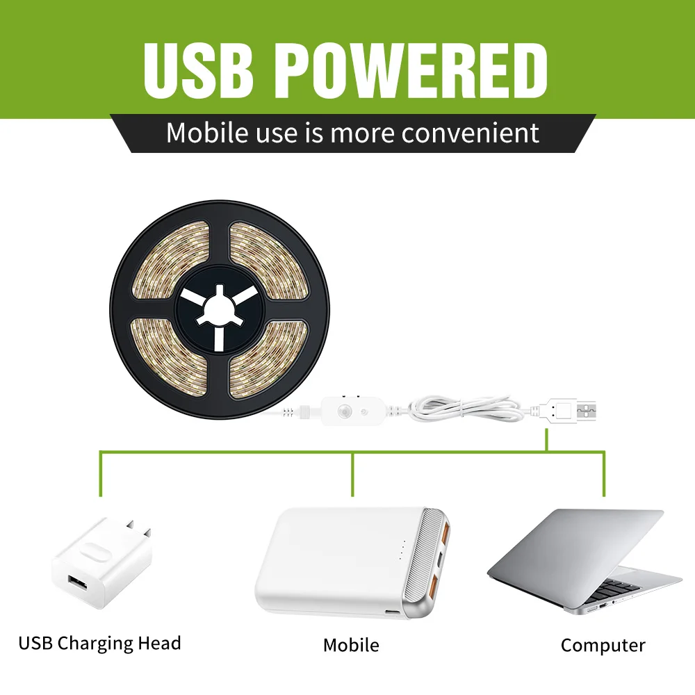 Гибкая светодиодная лента с USB-датчиком движения, 5 В, 50 см, 1 м, 2 м, 3 м, 4 м, 5 м