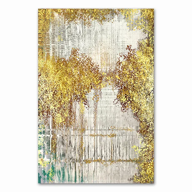 Абстрактная картина с изображением золотых растений в современном с...