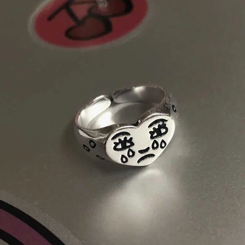 Кольцо в стиле Харадзюку, с сердцем и слезами, регулируемое, Y2K