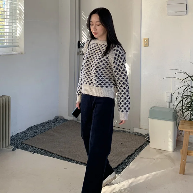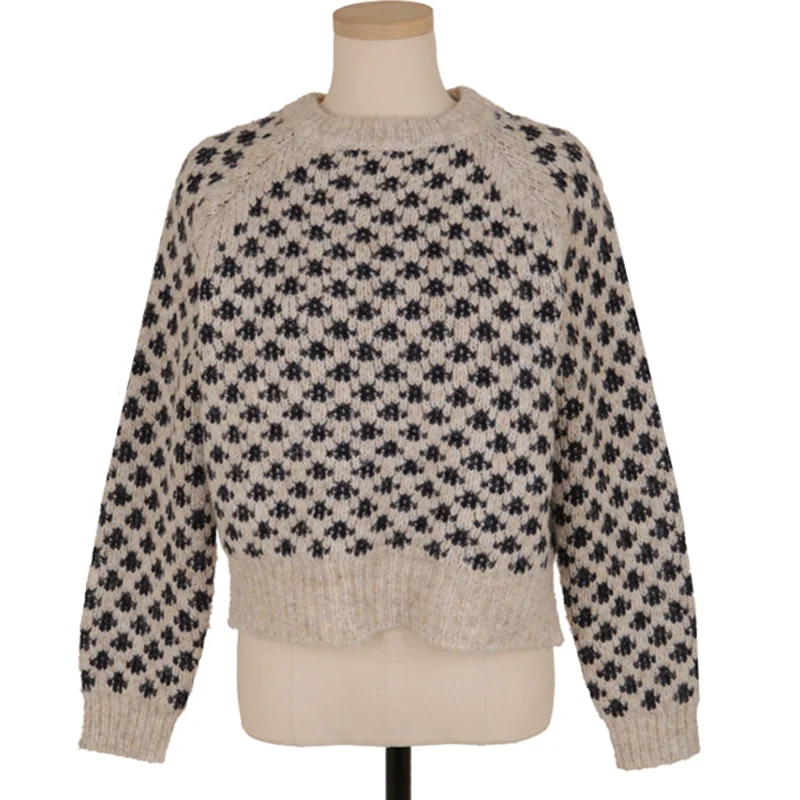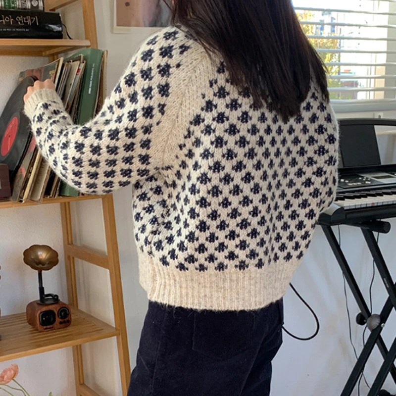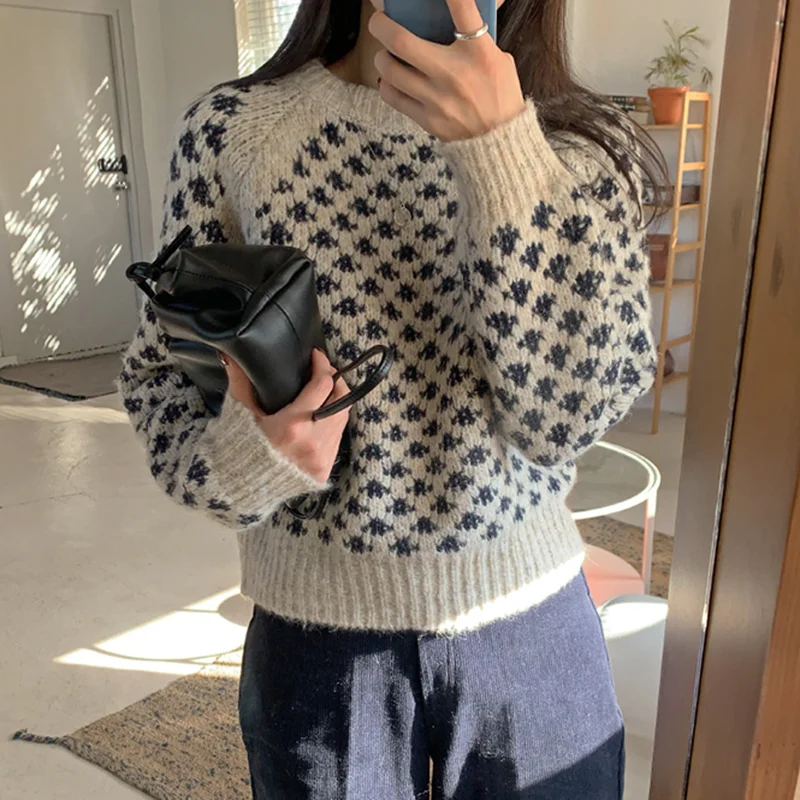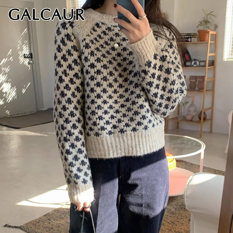 Женские винтажные свитера GALCAUR, свободные Вязаные Короткие пуловеры оверсайз с круглым вырезом и длинным рукавом, зима 2020