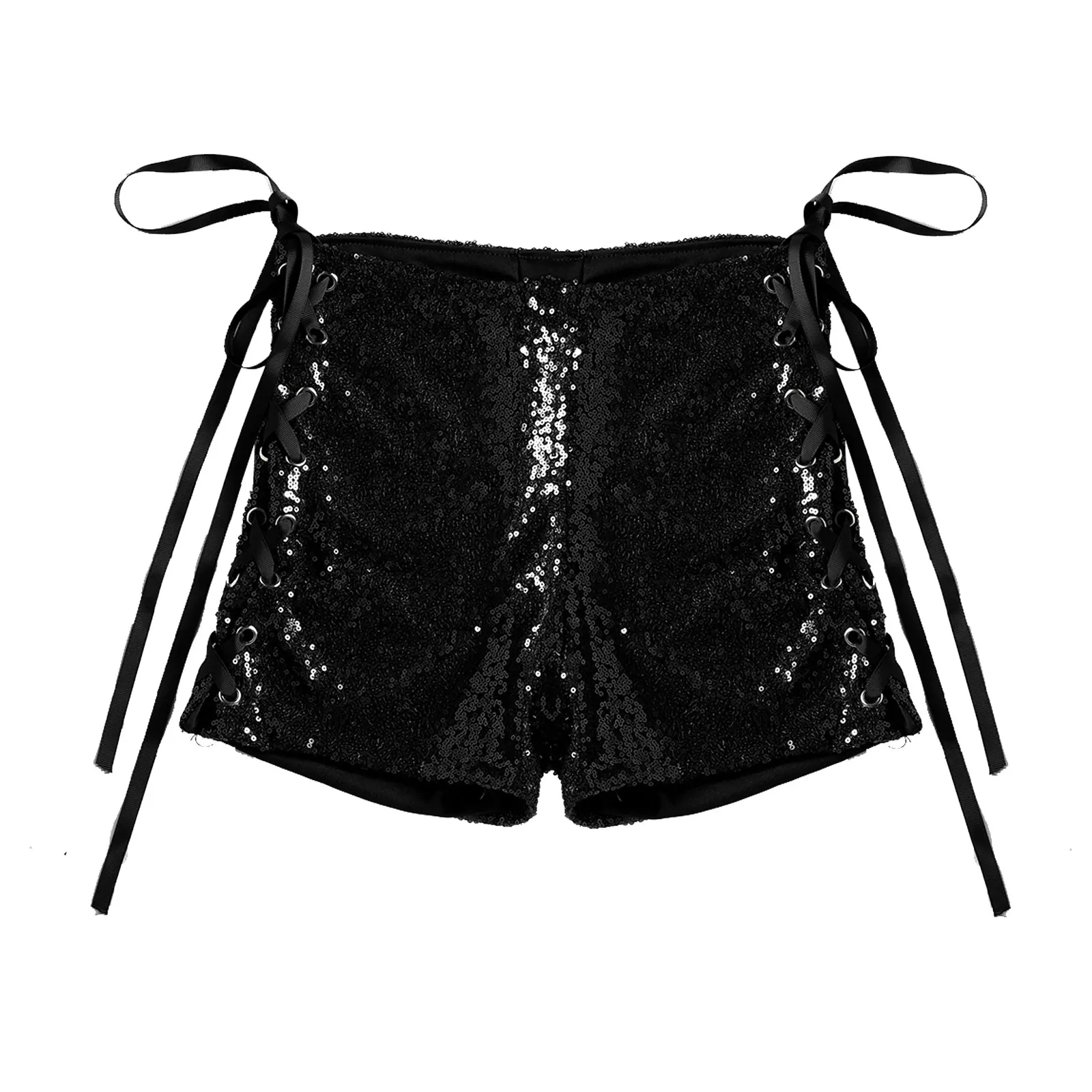 Женские Блестящие Мини-шорты со шнуровкой сбоку