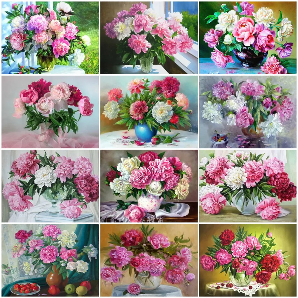 Huacan 5D алмазов картина ваза, украшенные цветами; Домашние туфли искусство Алмазная вышивка пион мозаичное украшение стены ручной работы
